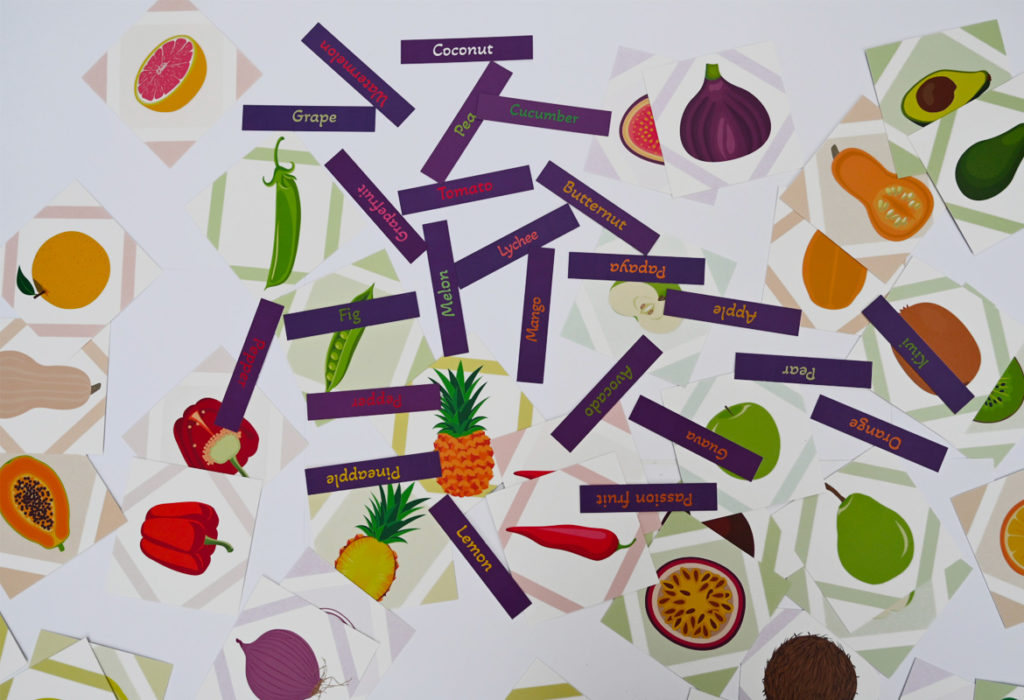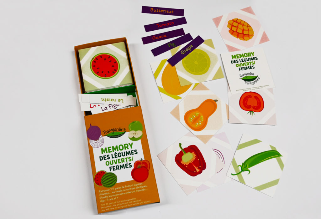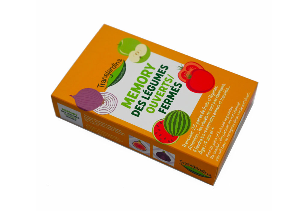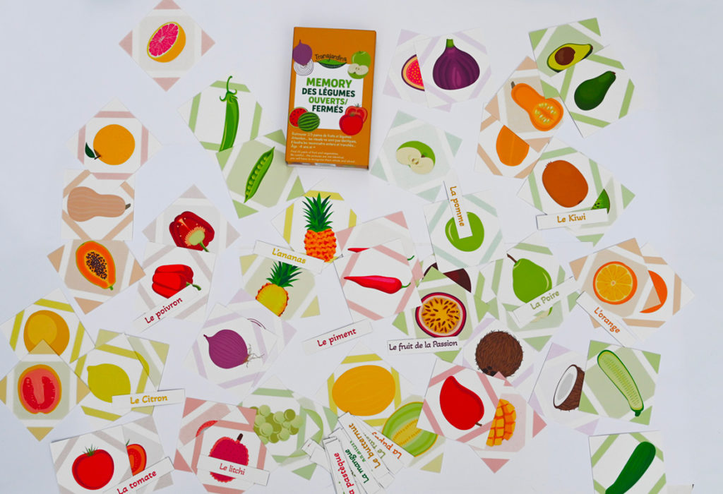 Jeu de mémoire et de découverte de l’évolution de 9 fruits et légumes, de la graine à l’assiette.