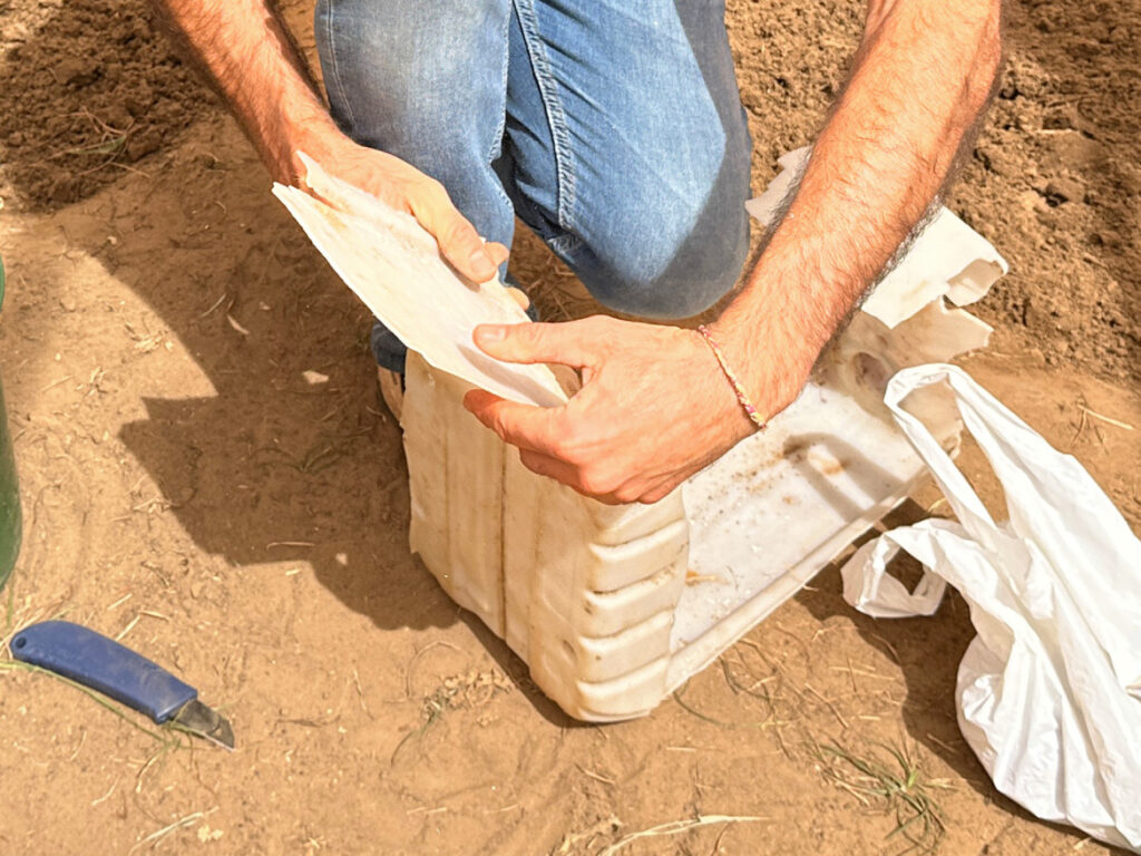Rather than throwing them away, we have chosen to give them a second life: the containers are cut into long strips to make small signage panels. Using a marker, they can be used to indicate the name of the varieties sown and the date of sowing.
