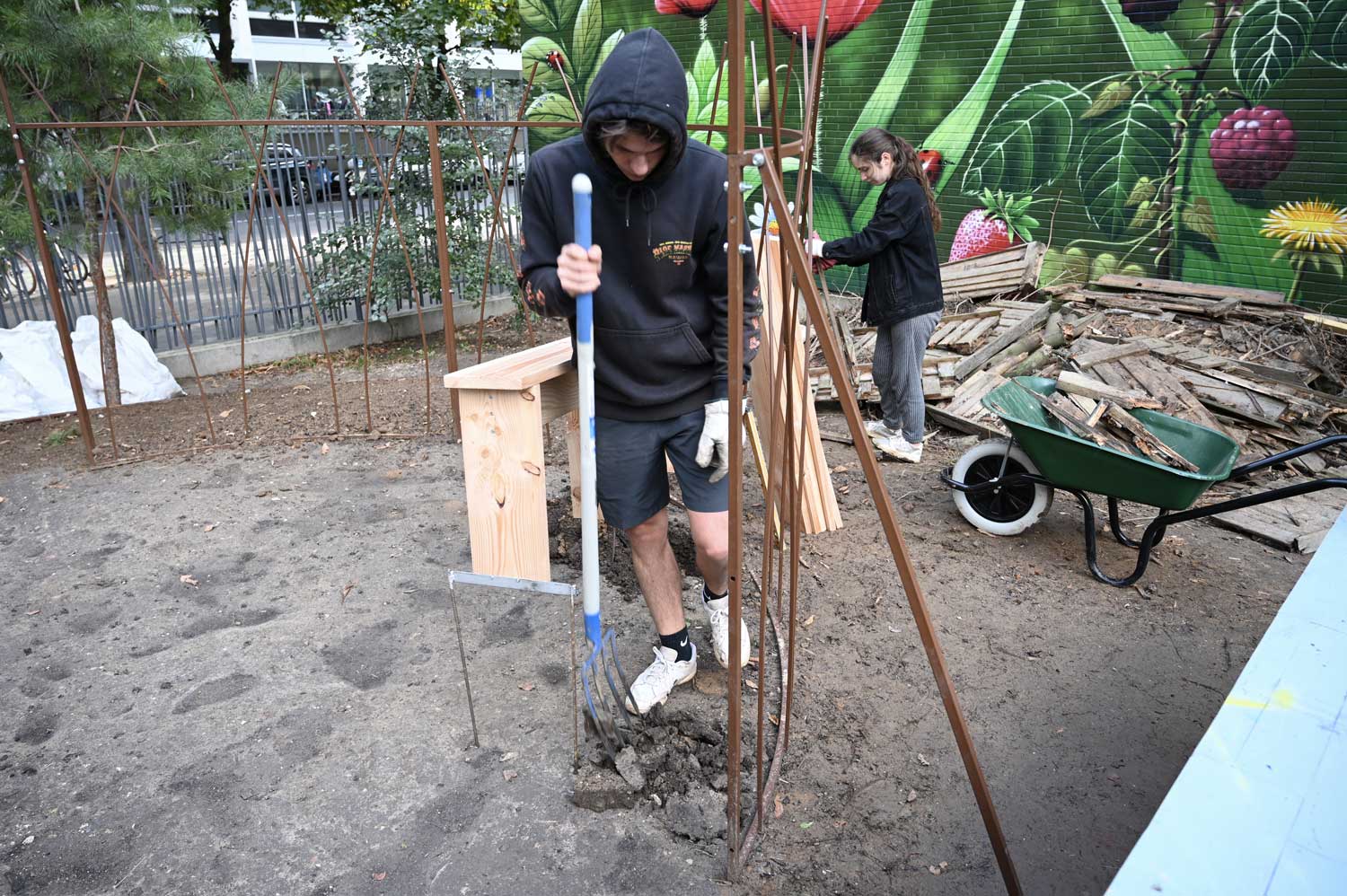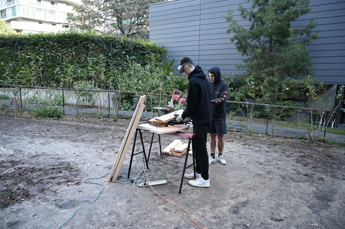 Six bancs en bois d’1m20 de long ont été construits par l’association Dessine l’Espoir, l’occasion d’improviser un atelier menuiserie avec les jeunes et les éducateurs de la Fondation Jeunesse Feu Vert.