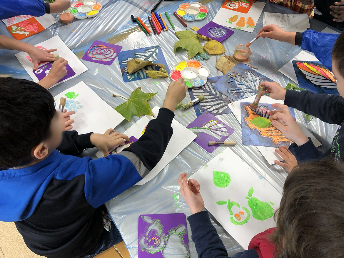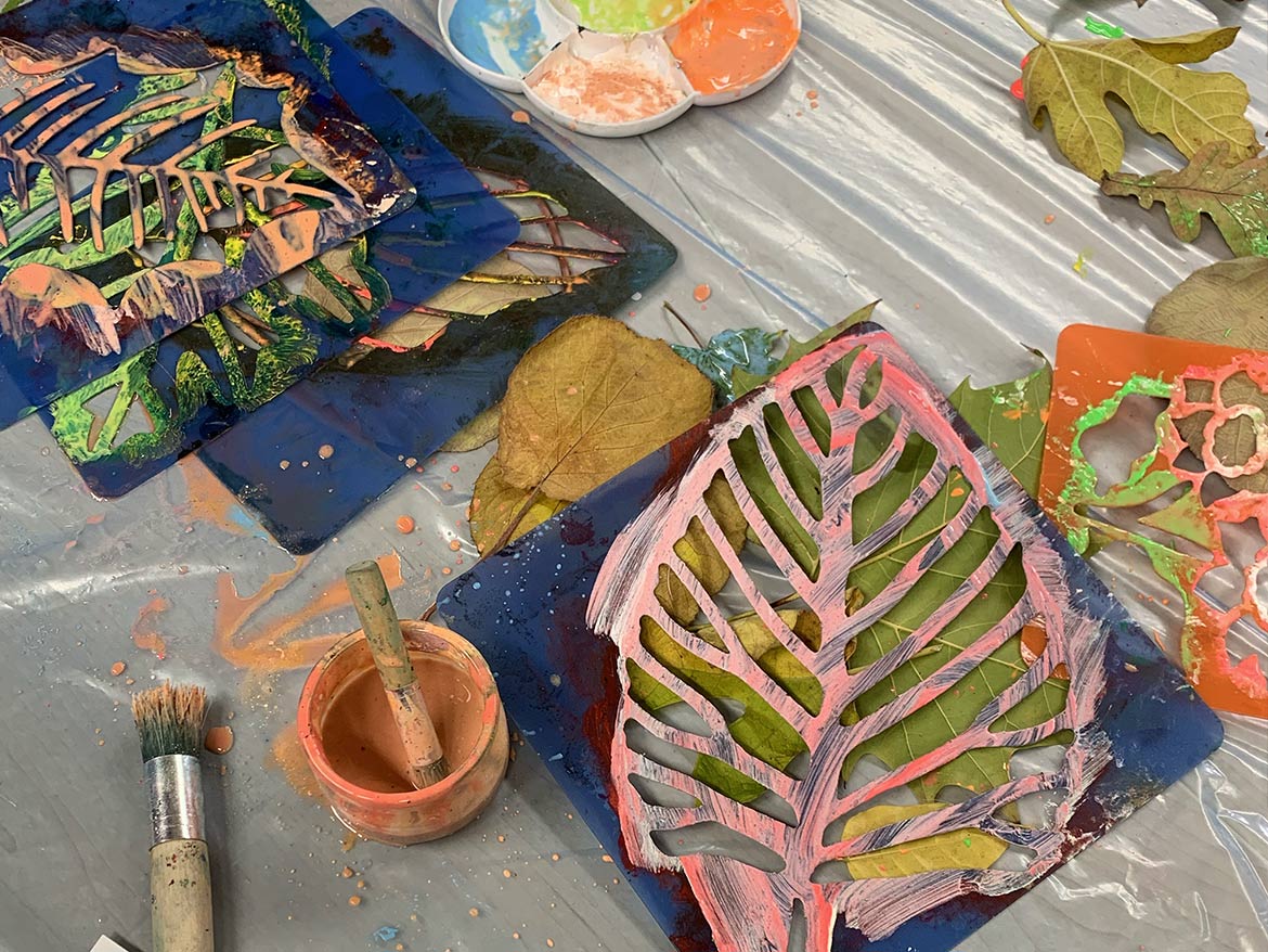 They were also able to use dried leaves to create various patterns. The children made many colourful paintings to take home!