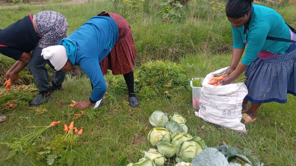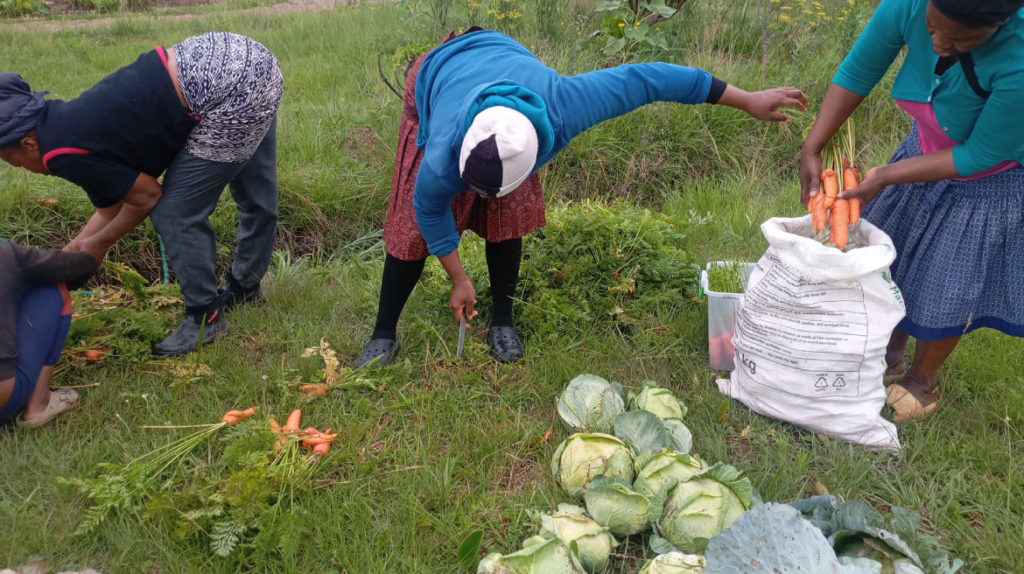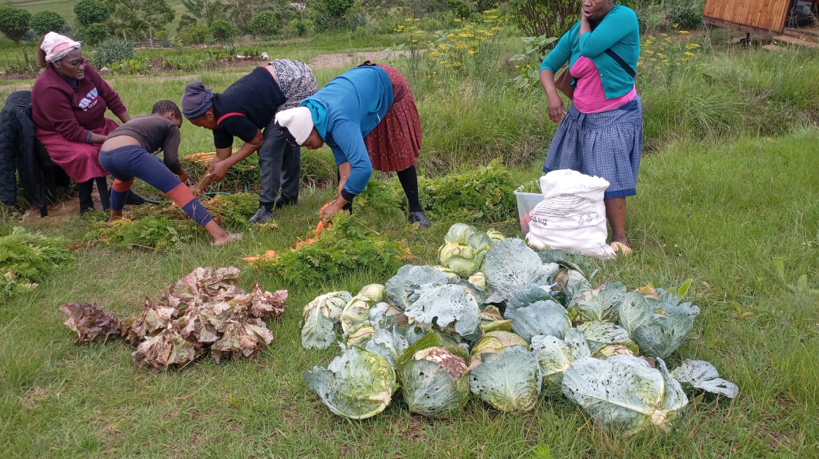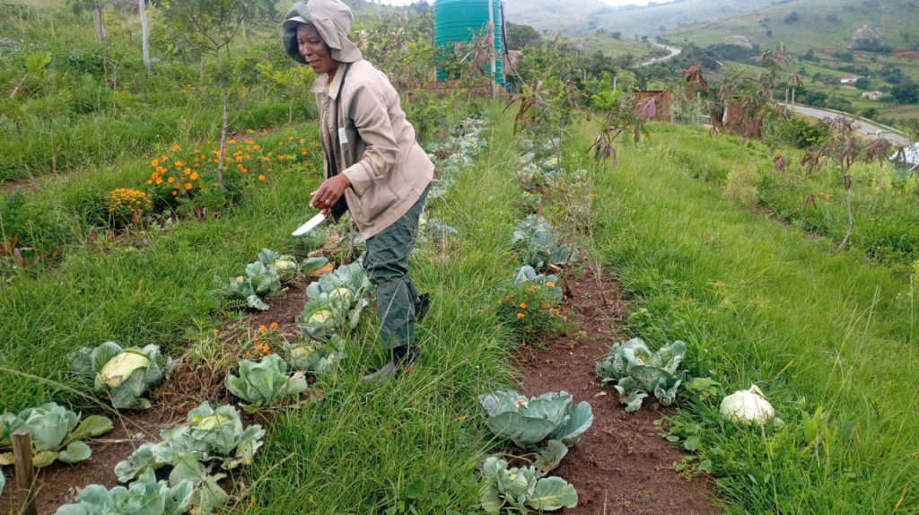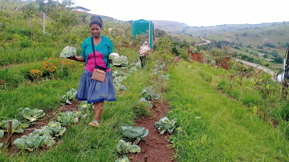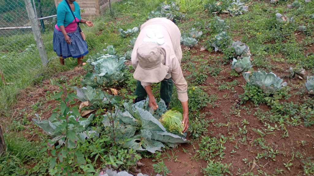 Les femmes du Jardin des Savoir-Faire ont récolté des choux dans le potager afin de constituer des colis alimentaires destinés aux patients séropositifs de l’hôpital de Piggs Peak.