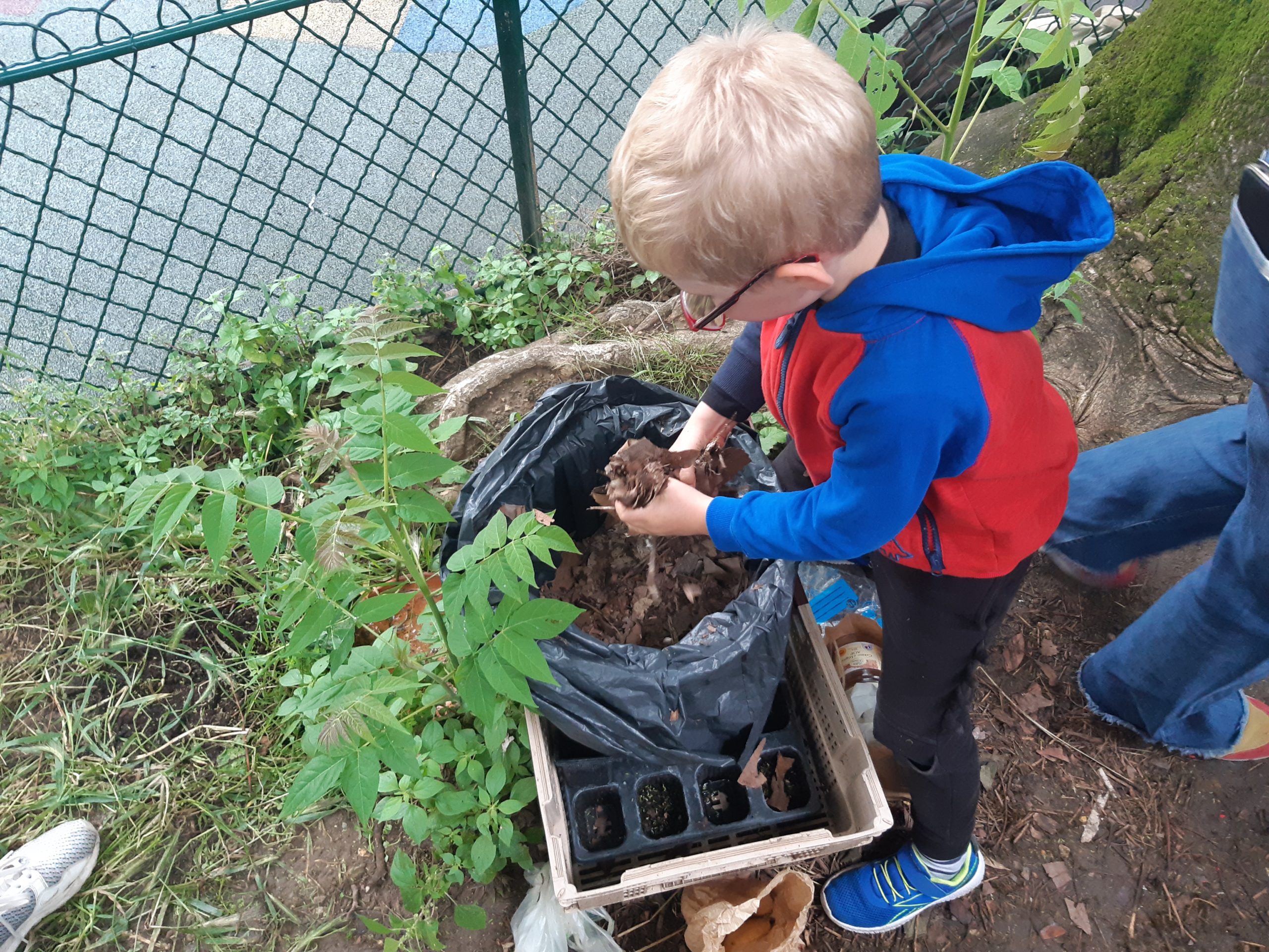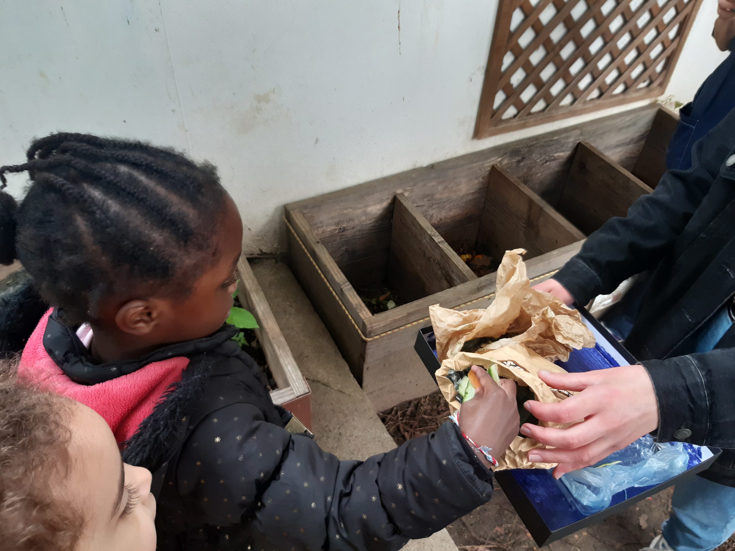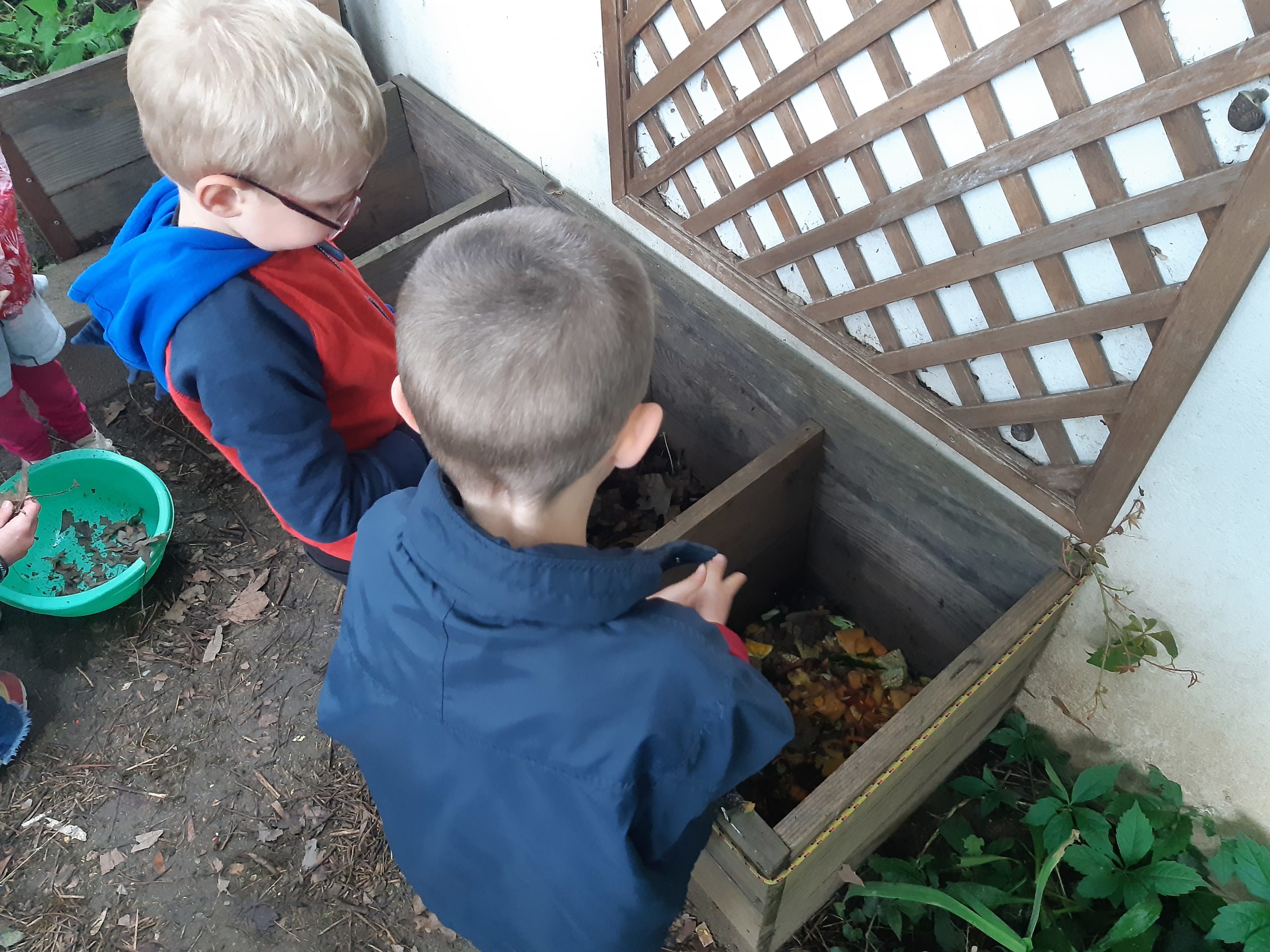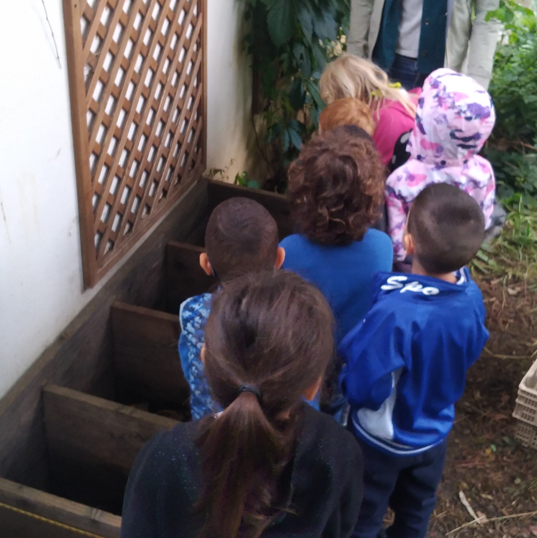 One layer after another, our compost is built like a lasagna dish. The children were delighted to get their hands dirty to make it !