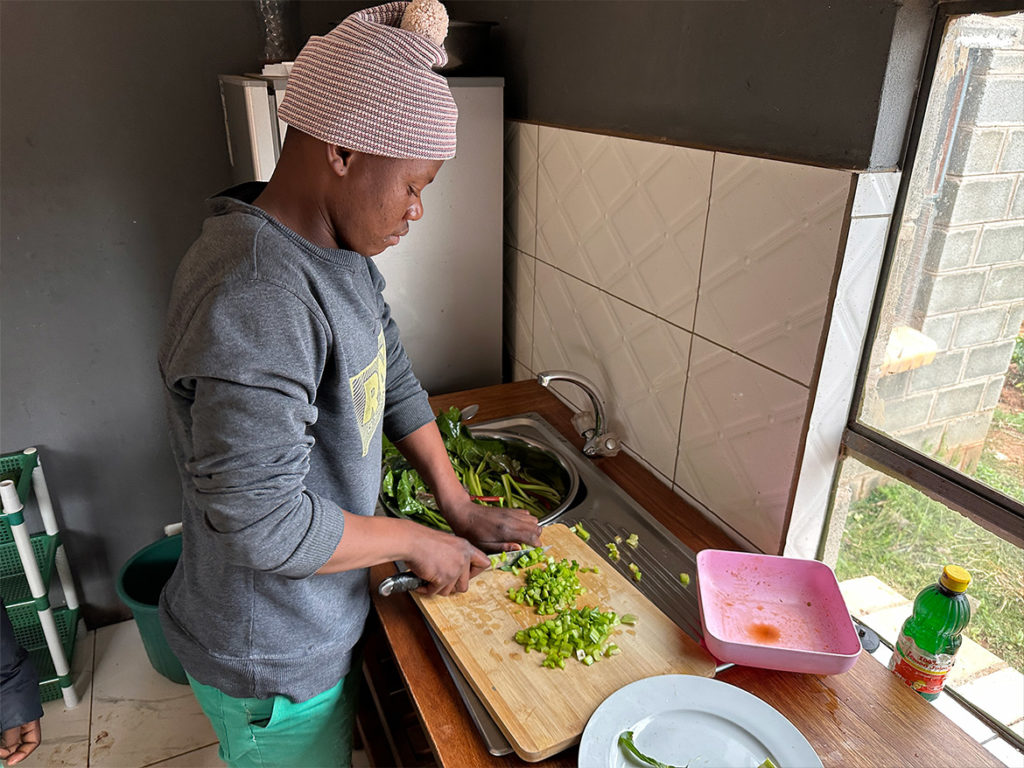 The young people at Levi’s Nek farm have learned to season “pap”, the staple cornmeal in Lesotho, with vegetable sauces made from their own garden produce.