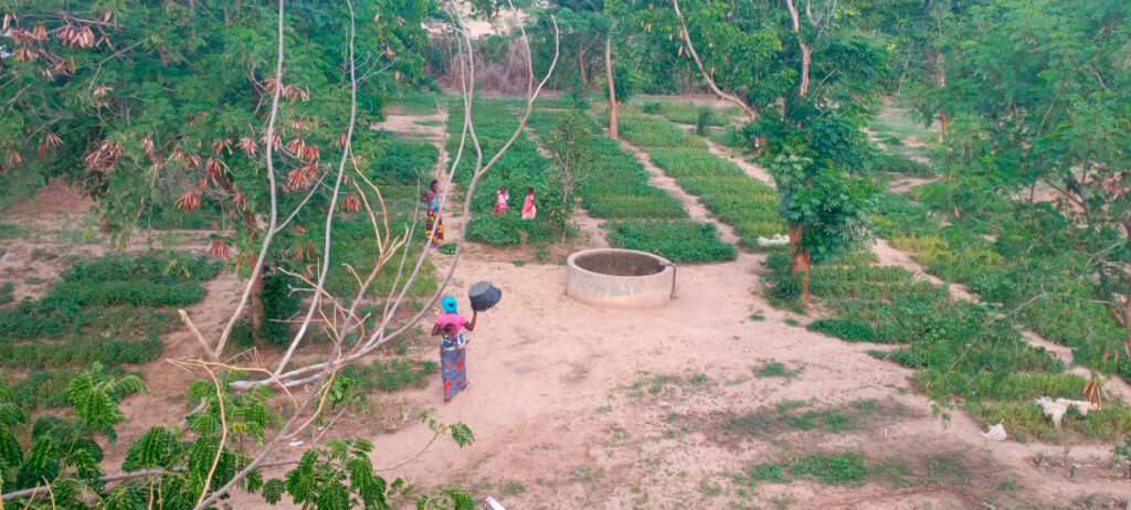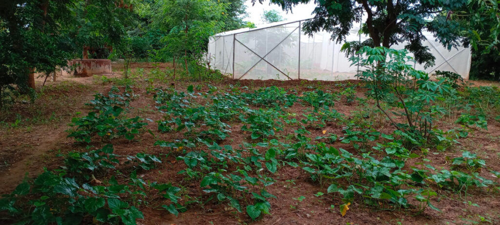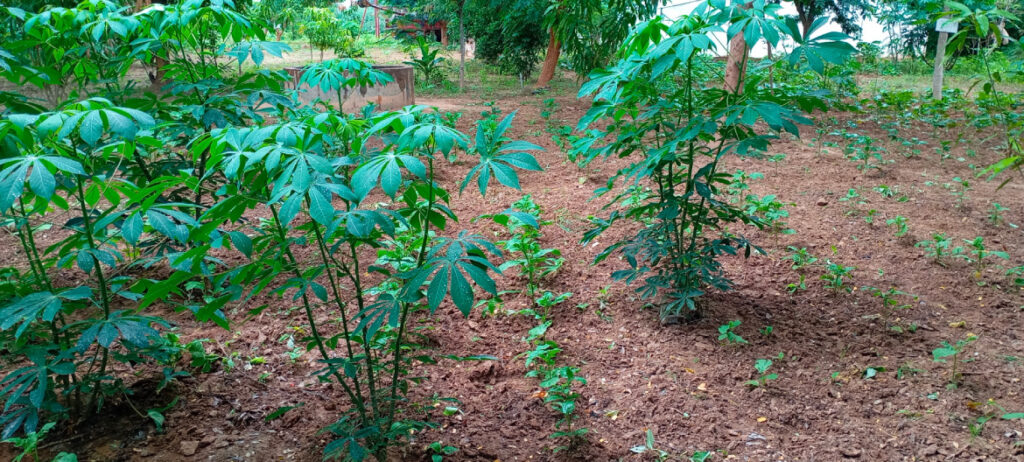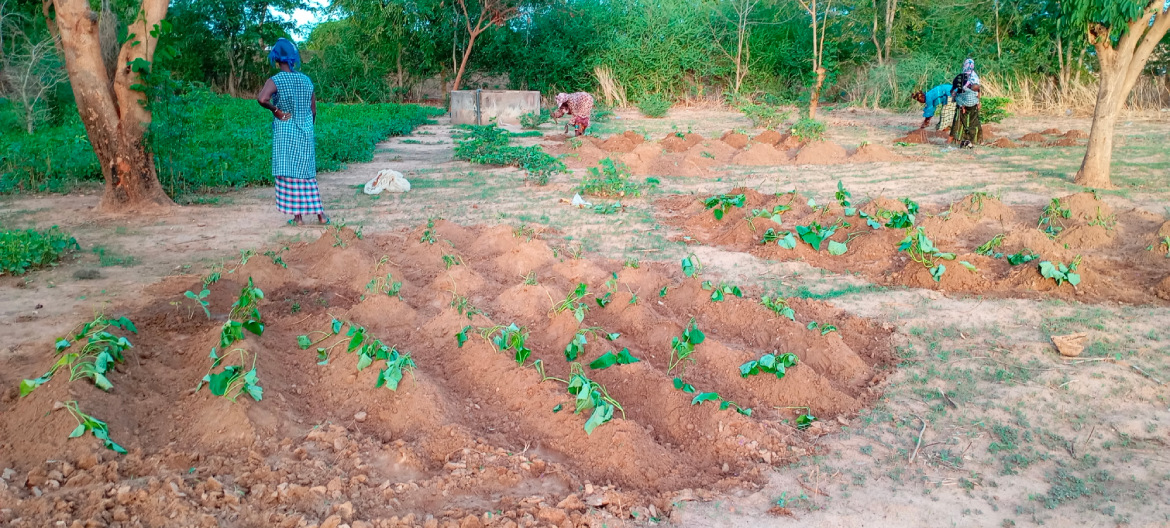 Sur la parcelle partagée attenante au centre de santé de Dawady, les femmes ont mis en culture des patates douces, plantées dans des monticules de terre d’environ 40 cm. Cette technique améliore le drainage, concentre les nutriments et facilite la rétention d’eau pendant l’hivernage, pour une production plus abondante de tubercules. Elles ont également planté du manioc et des aubergines amères, contribuant à la diversité alimentaire de la parcelle. Le jardin constitue un espace d’apprentissage et de partage des savoir-faire agricoles, renforçant l’autonomie des participantes. Ce projet est soutenu par The Ivory Foundation depuis 2019 et continue de bénéficier à la communauté locale.