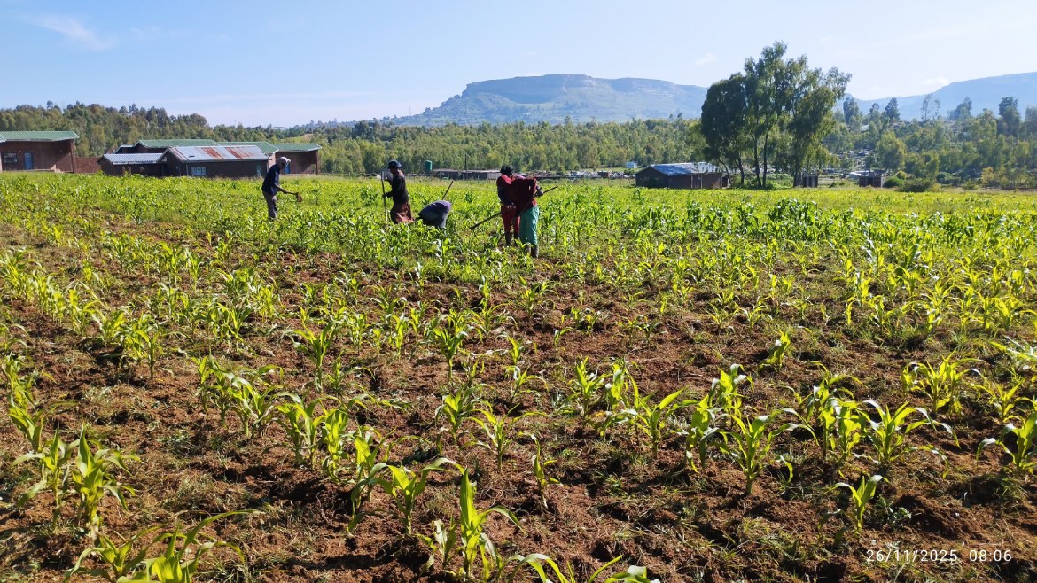 À la ferme de Levi’s Nek, les jeunes se sont mobilisés pour entretenir la parcelle de maïs. Ils ont désherbé toute la surface à la main afin de limiter la concurrence des mauvaises herbes et éviter que le sol ne s’épuise inutilement.