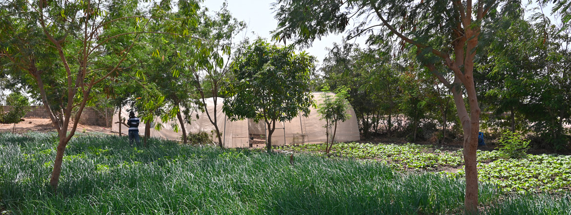 Thanks to the digging of a well connected to a solar-powered pump, funded by The Ivory Foundation in 2019, the Diokhar farm has gradually been transformed into a true oasis. The entire area is cultivated according to agroforestry principles, enhancing soil fertility and crop resilience. A greenhouse dedicated to seed production has also been installed on the site, strengthening local capacity for seed multiplication.