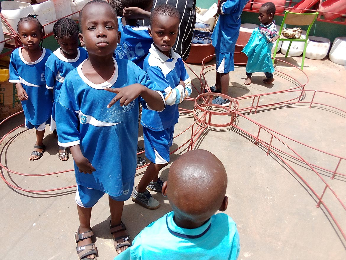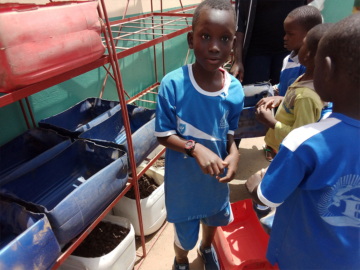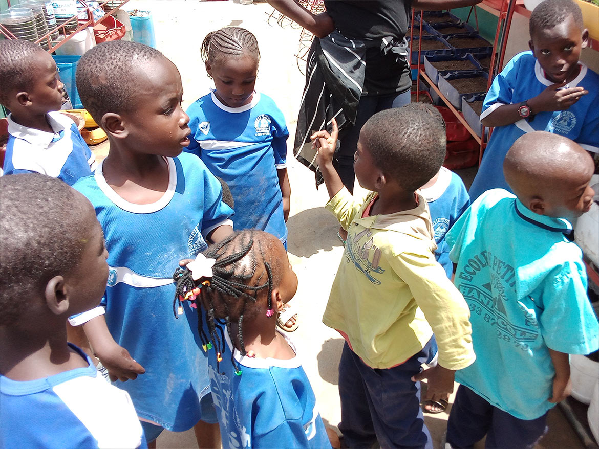 The children came to discover these new containers, which they will enjoy filling with Joseph, the gardener in charge of the project.