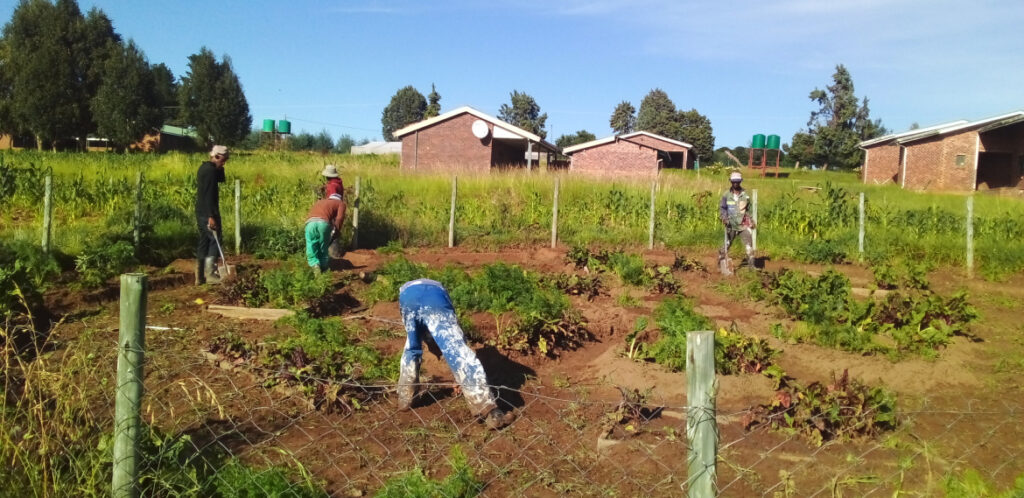À l’école de St Paul à Leribe, les jeunes sourds et malentendants engagés dans le programme de formation agricole continuent d’assurer l’entretien des parcelles au sein de l’école. Chaque jour, ils préparent les sols, désherbent et soignent les cultures, renforçant ainsi leurs compétences pratiques en agroécologie tout en participant à la fourniture de légumes frais pour la cantine de l’école.