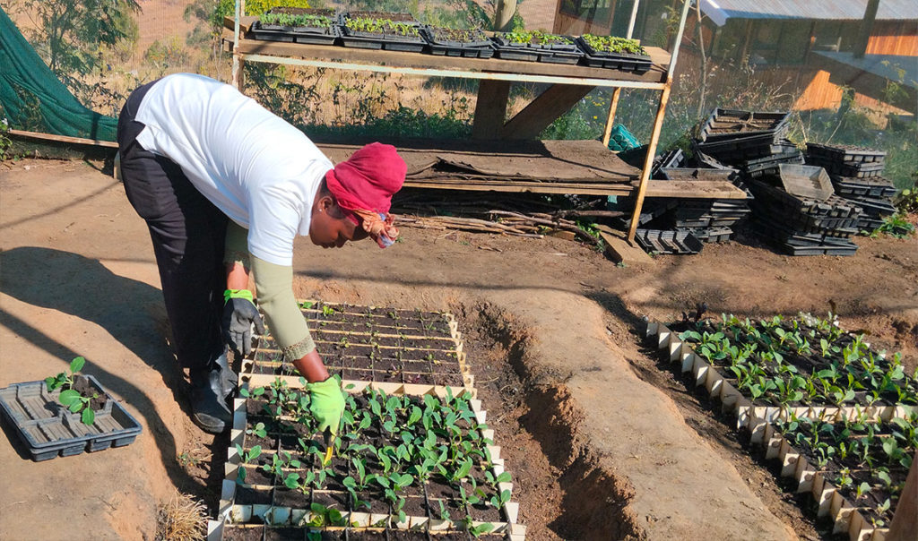 Les cinq femmes en charge de l’activité potagère assurent en ce moment la préparation de la pépinière pour le printemps austral.