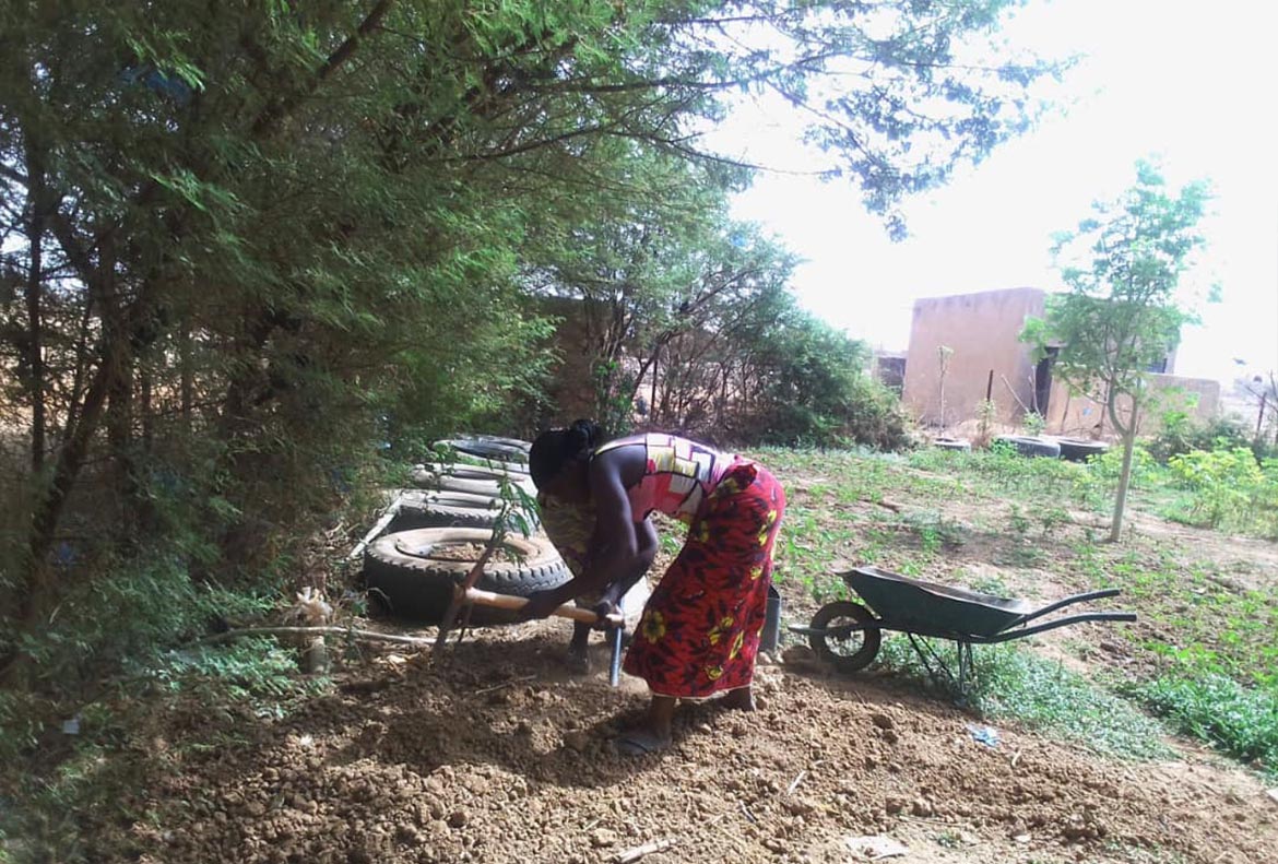 Pour les femmes bénéficiant d’un terrain suffisamment grand pour lancer une production en pleine terre, la quatrième journée de formation a été consacré à la réalisation de buttes de culture.