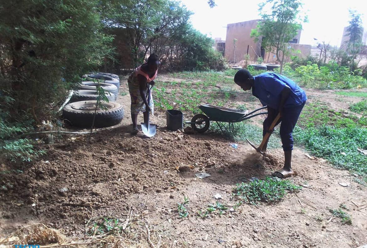 Les planches seront prêtes à être cultivées dans un délai de 15 jours. En effet, la première étape de décomposition de ces matériaux entraîne une montée en température lors des premiers jours pouvant nuire à la croissance des plants et des semis. Il a été recommandé aux femmes de procéder à l’aménagement de leur parcelle en plein sol et hors sol au cours de la semaine suivante afin que les animateurs du jardin ayant prévu de faire le tour des maisons puissent apprécier les réalisations.