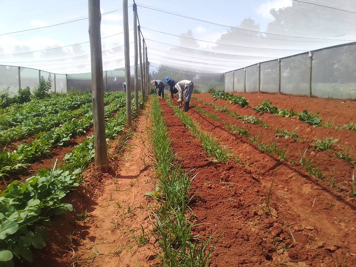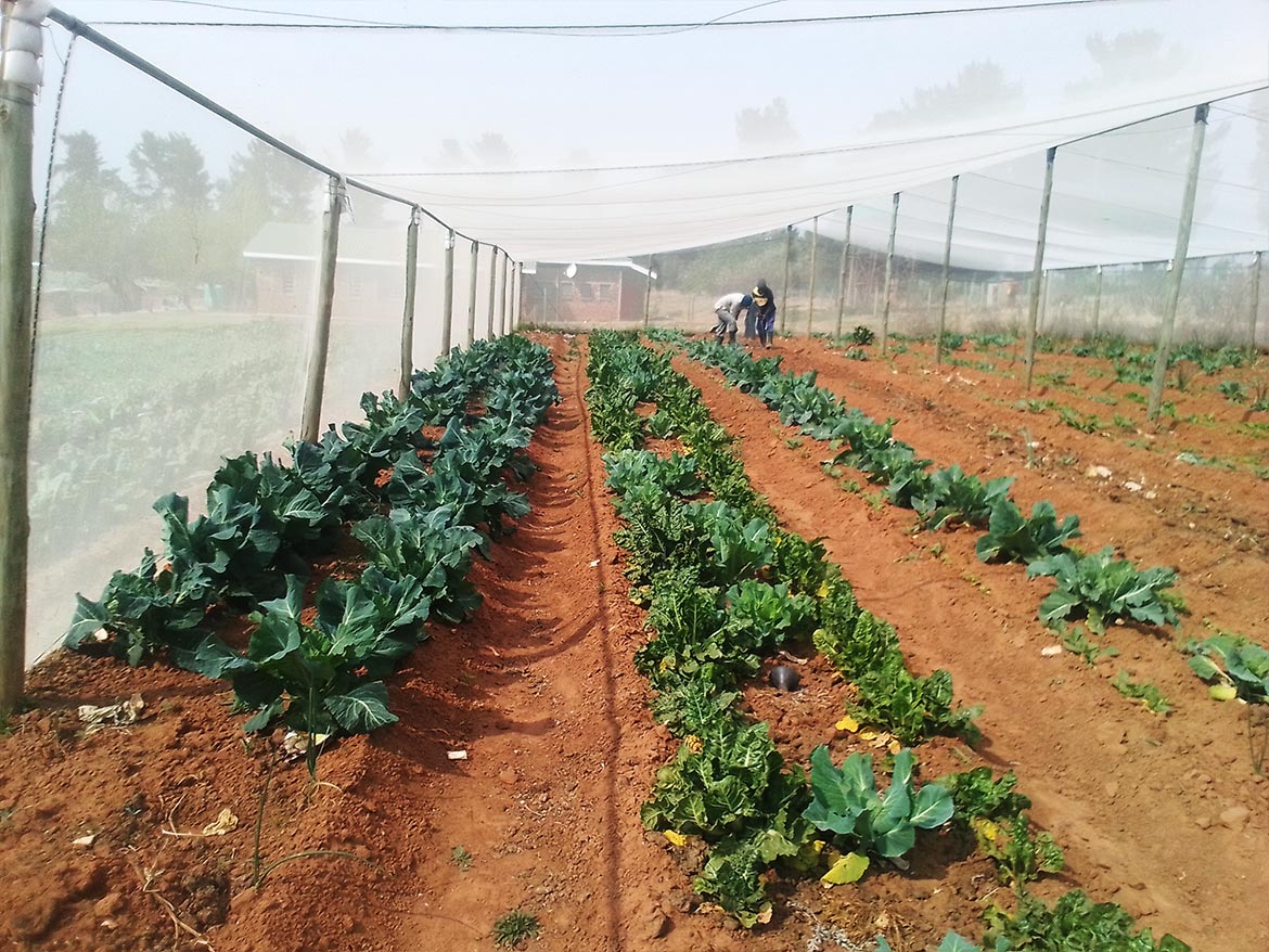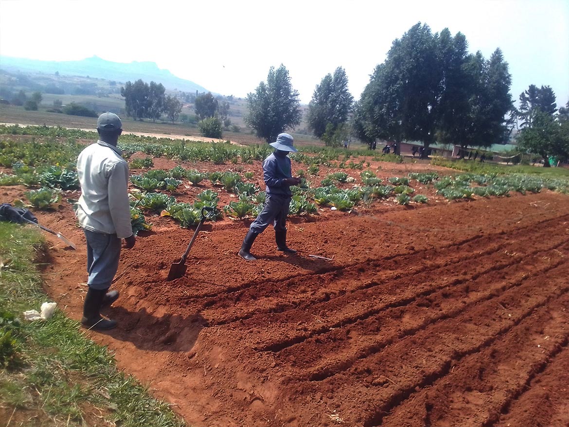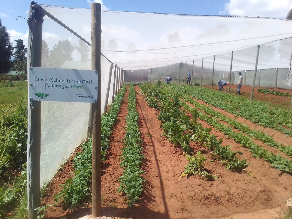 At St Paul’s School in Leribe, Lesotho, the 6 deaf and hard of hearing young people trained at the educational farm maintain the plots to produce the vegetables cooked at the boarding school canteen.