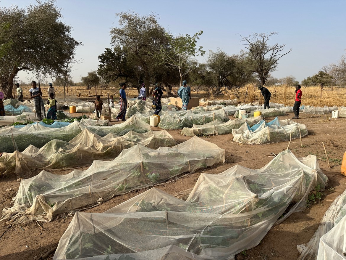 In Boulel, the gardeners have also developed an ingenious solution: some plots are protected by mosquito nets installed above the crops. This technique protects young shoots from attack, particularly from birds, which are fond of young shoots. It also has another important advantage: it reduces water evaporation and the impact of the sun, particularly during the dry season.