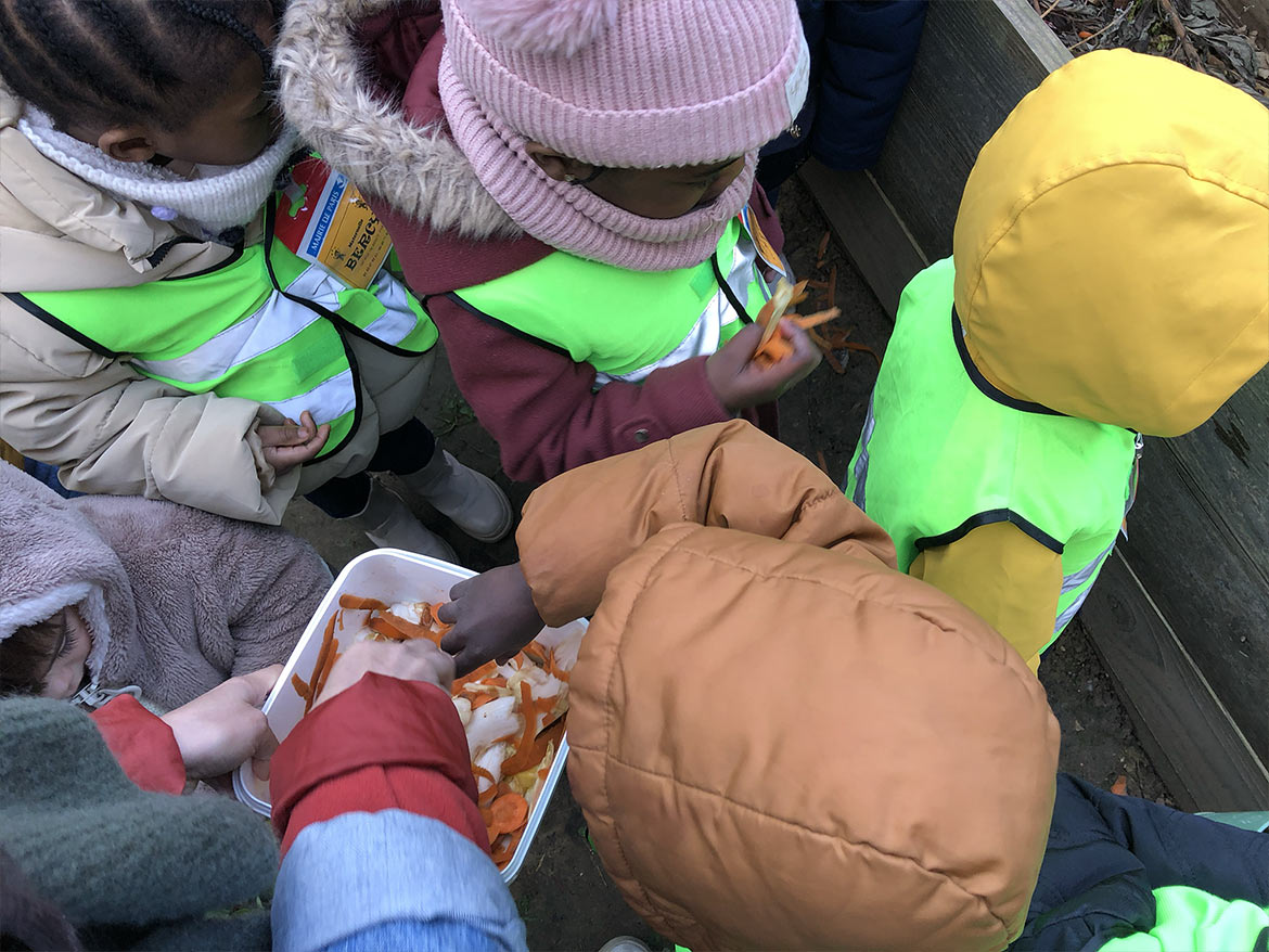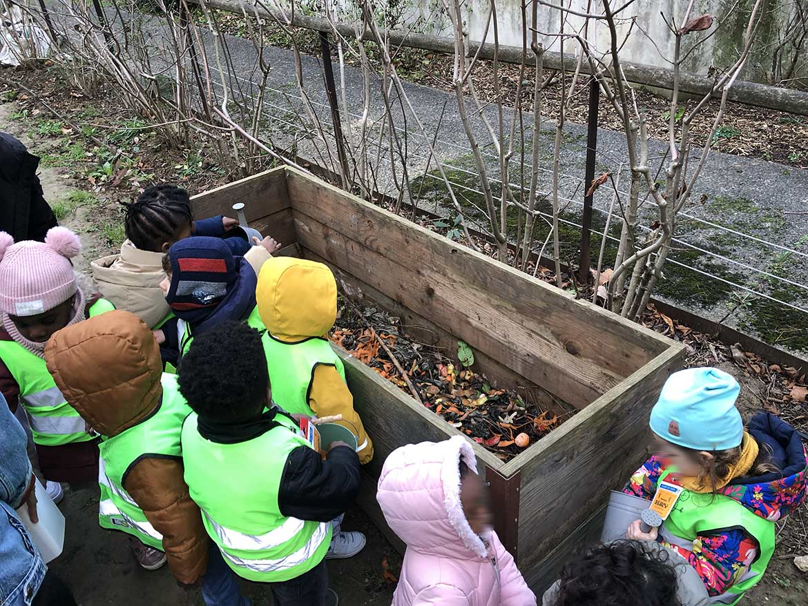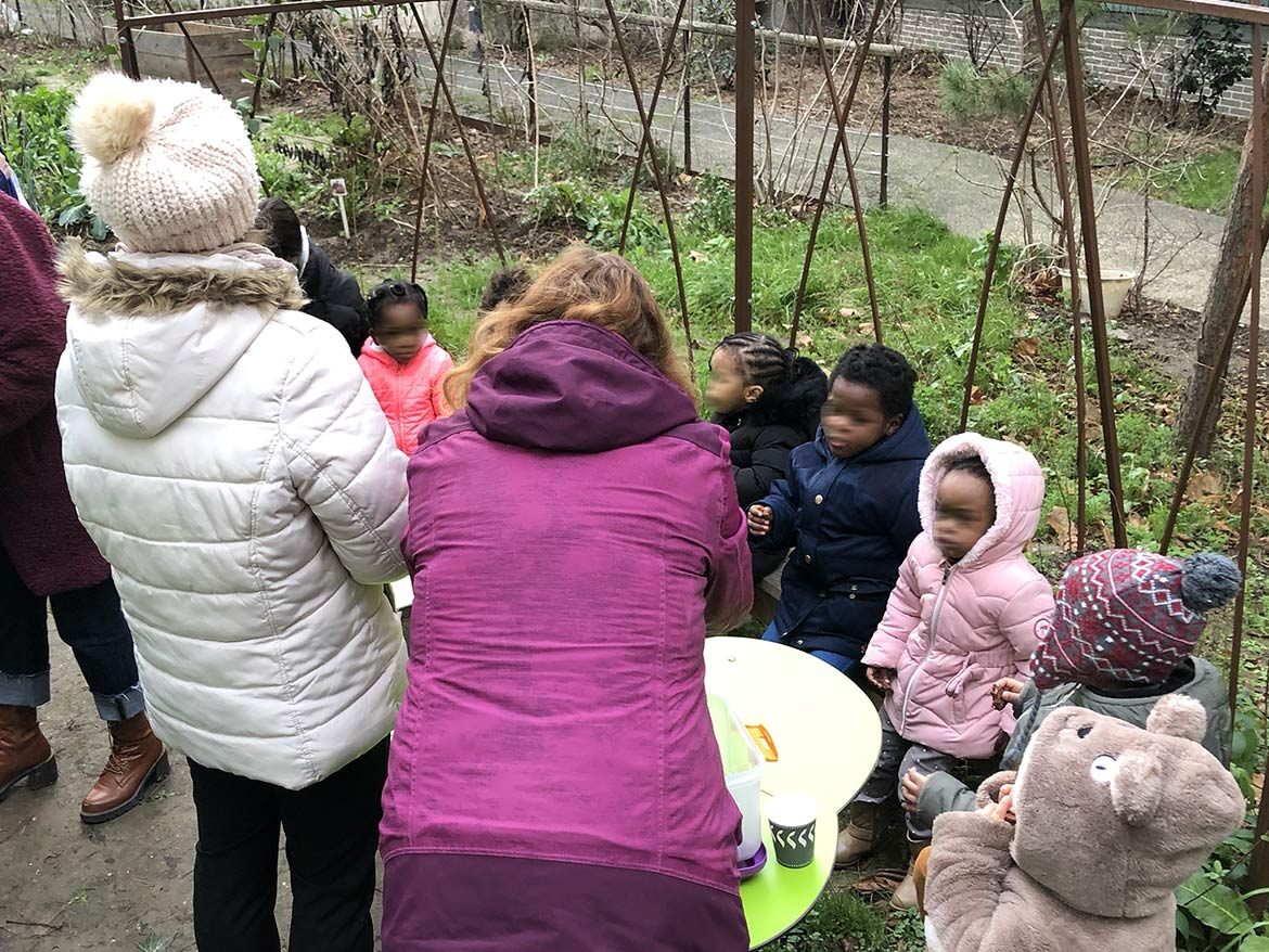 Les enfants de la maternelle de Bercy et de la crèche de Villiot se sont rencontrés dans le jardin de la Traversine-Villiot. Ils ont composté leurs déchets végétaux (épluchures principalement) et visité le jardin ensemble. Ensuite, au sein du kiosque autour des tables en trèfles, les enfants ont pris leur goûter.