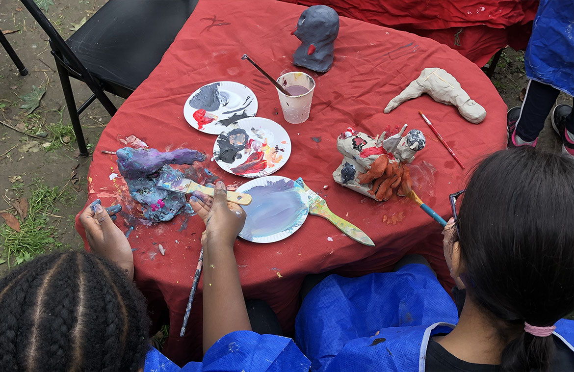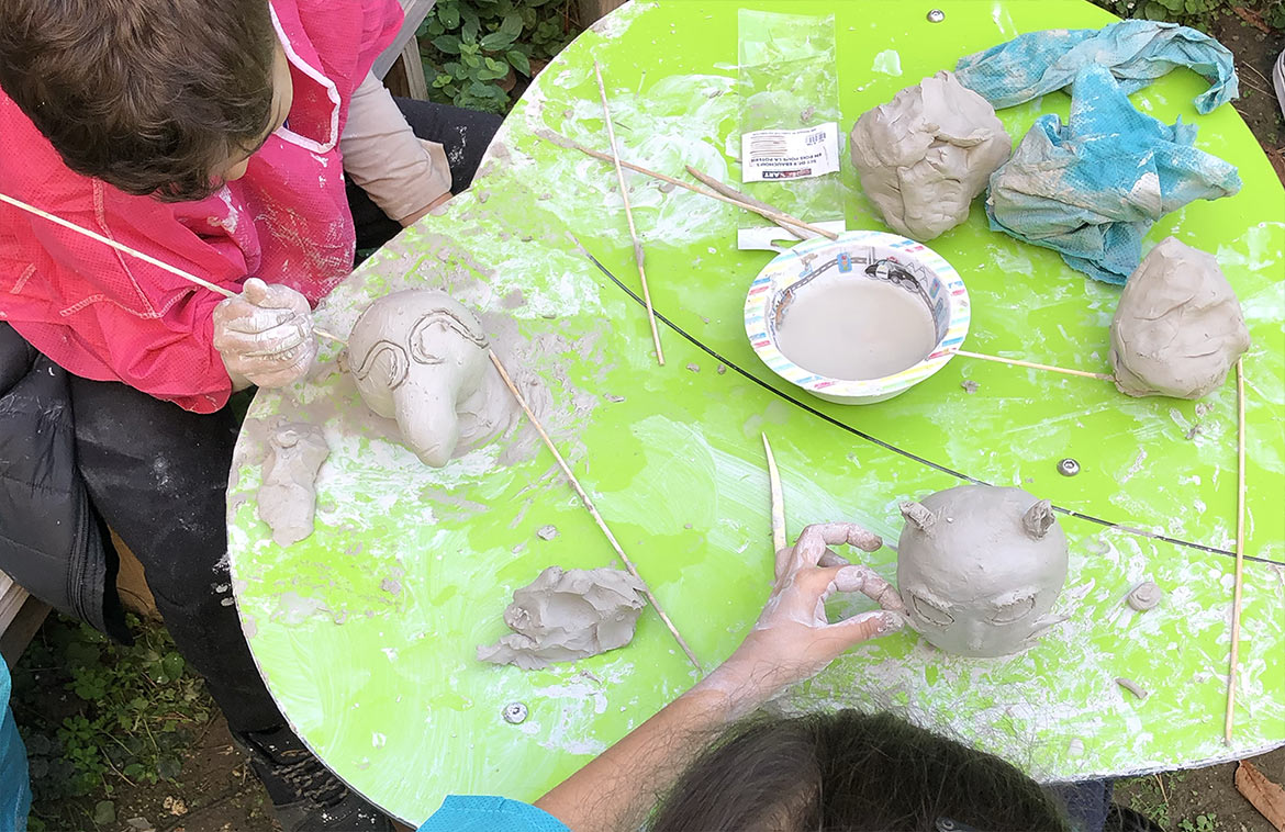 After a day spent modeling clay under the guidance of Zoé from Double Face, the children painted their creations and took them home as souvenirs. The two days of activities took place in the gazebo of the Traversine Villiot garden to take advantage of the last days of good weather. The garden also provides a beautiful setting for the children’s creations.