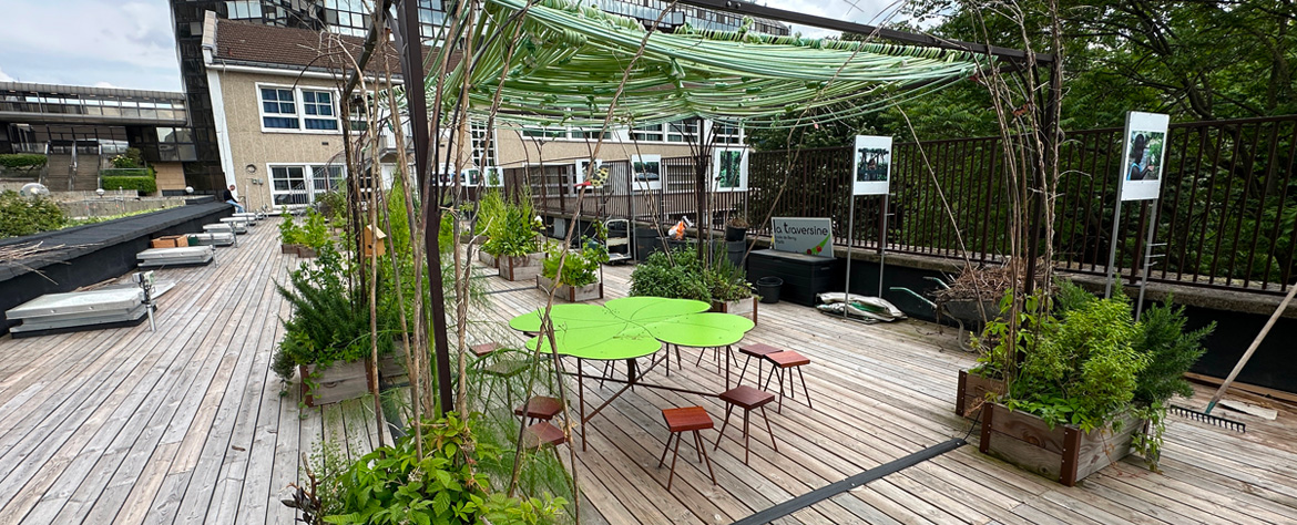 La Traversine is an educational garden developed in 2017 on the roof of the Bercy school in the 12th arrondissement in Paris by Desigining Hope as part of the "Parisculteurs", a call for projects launched by the Paris City Council for green roofs, terraces and land in the capital. In 2020, after starting out on the school terrace, the Traversine takes root in the elementary school playground with La Traversine #2. Click here to find out more about this garden.