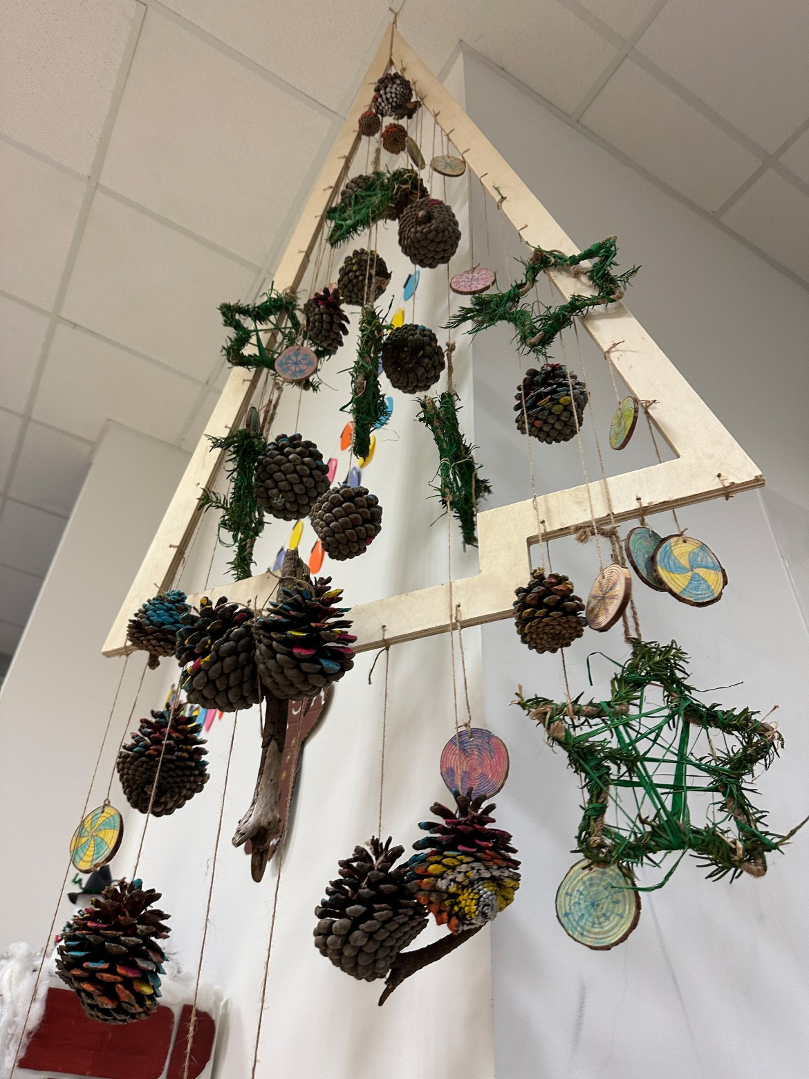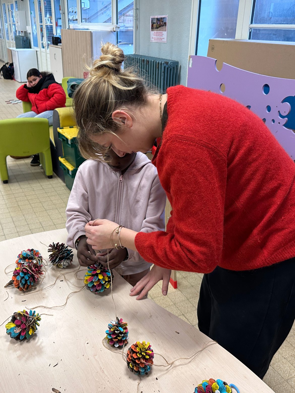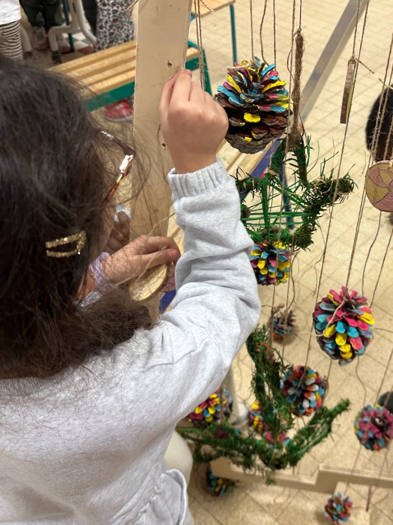 Ça y est ! Après plusieurs semaines d’ateliers avec les enfants pour réaliser des décorations de Noël à partir de végétaux, le grand jour de l’accrochage dans le sapin est arrivé !