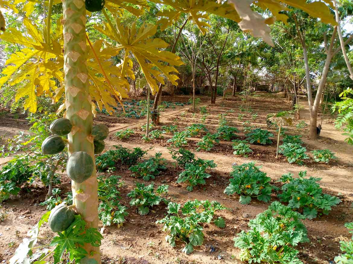 Toutefois, les arbres autour des parcelles apportent de l’ombre et de l’eau aux cultures, ce qui réduit nettement la consommation d’eau.