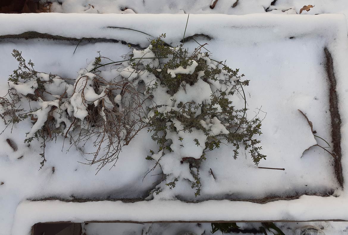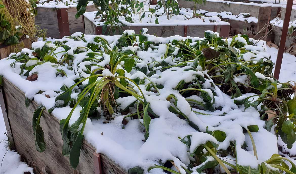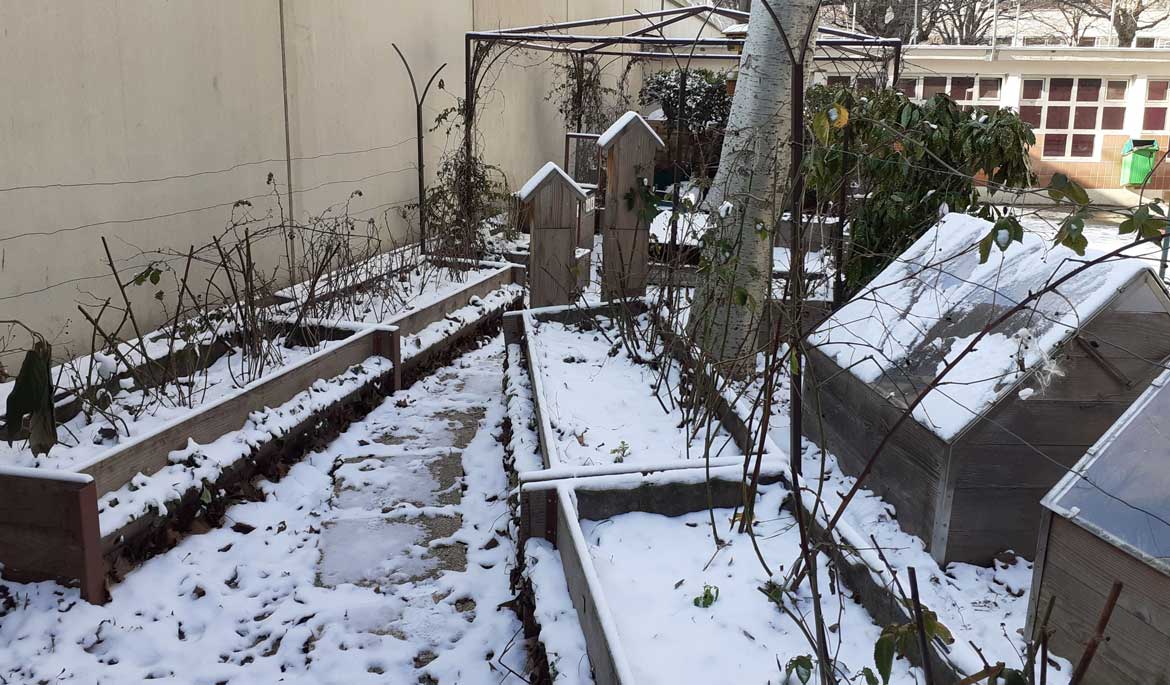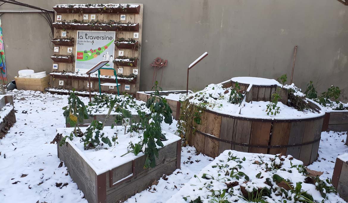 La neige et le froid ont enveloppé le jardin de la Traversine cette semaine. Certaines plantes qui avaient résisté jusque-là, comme la capucine, n’ont pas survécu à ces conditions hivernales. Tandis que les épinards et les betteraves bravent le froid avant de repartir de plus belle. Au sujet du citronnier, il a été placé dans une des mini serres du jardin à l’automne afin d’être protéger des gelées.