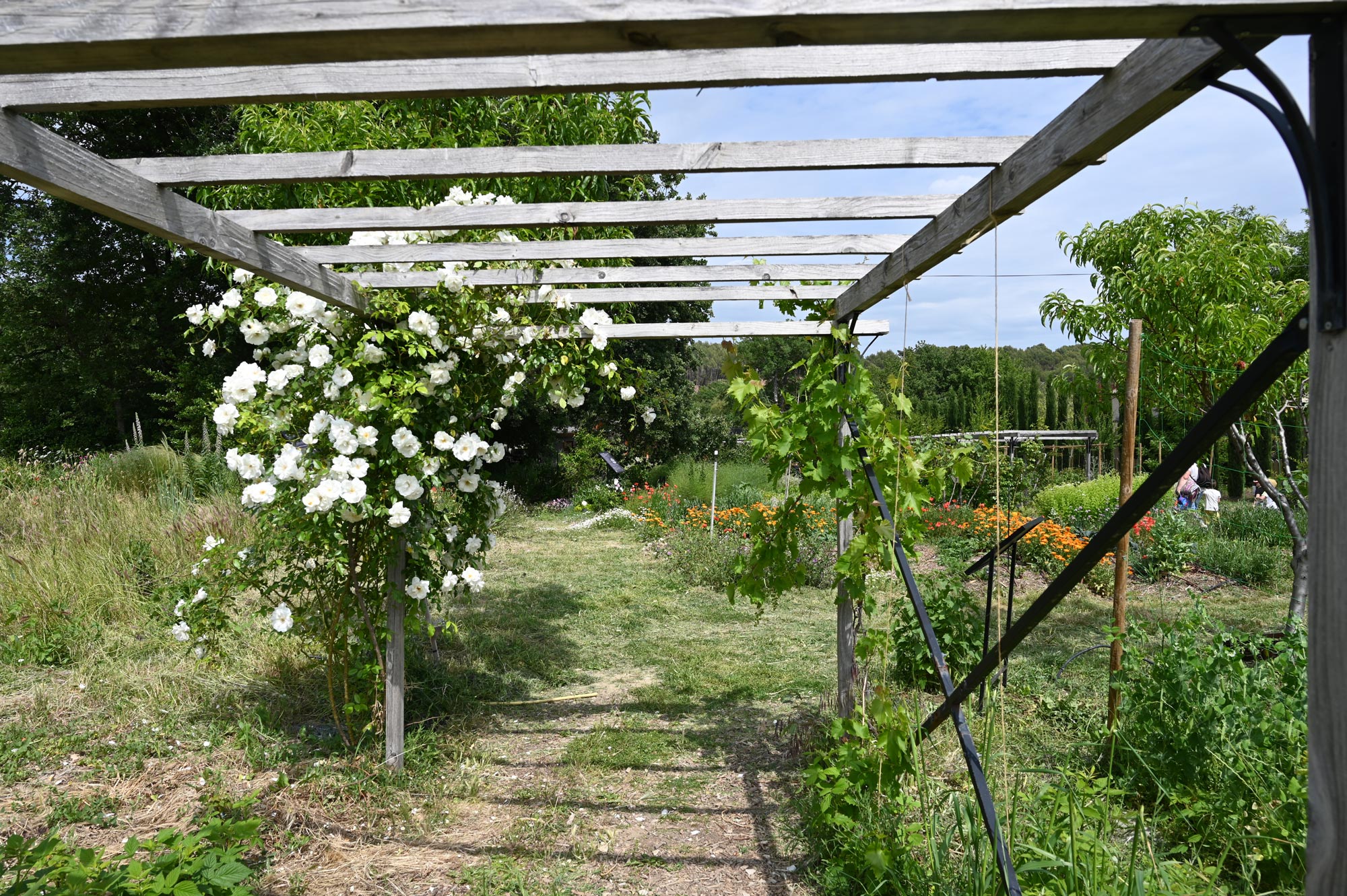 Le soleil profite au Grand Potager, les fleurs sont abondantes et le jardin bourdonne d’abeilles qui viennent se délecter de cette diversité de parfums et de couleurs.