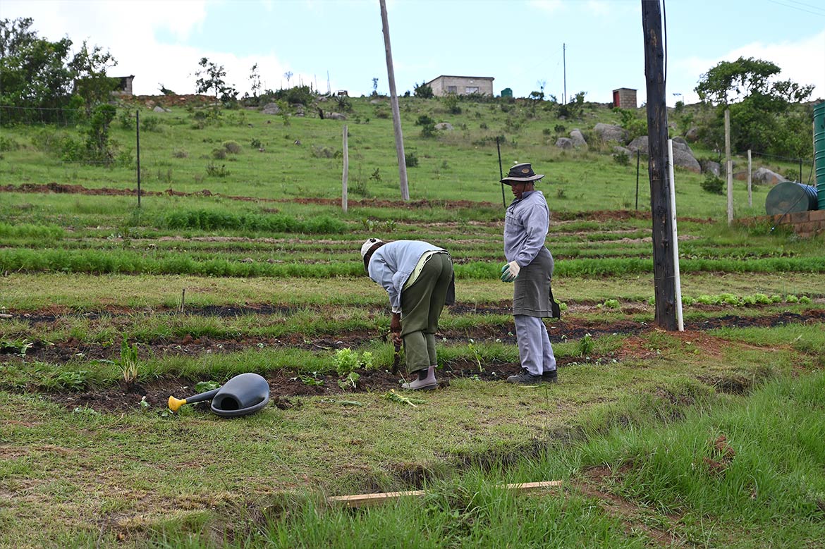 In Malanti, at the Garden of Skills, 5 women are in charge of the maintenance of the vegetable garden.