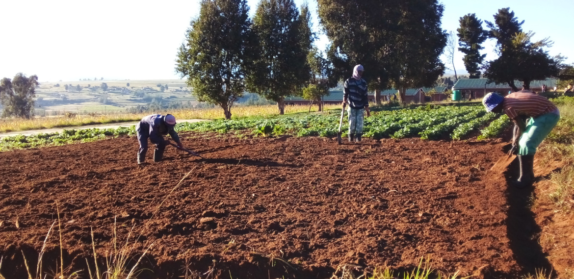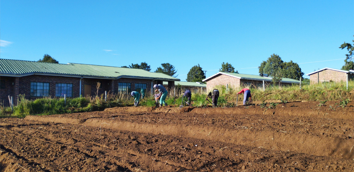 À la ferme de l’École Saint-Paul de Leribe, au Lesotho, les jeunes en formation sont pleinement impliqués dans l’entretien des parcelles et la mise en culture des terres de l’établissement.