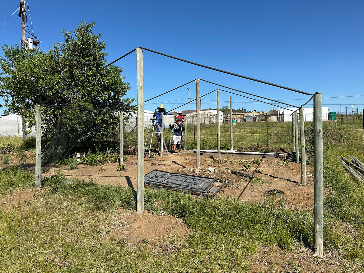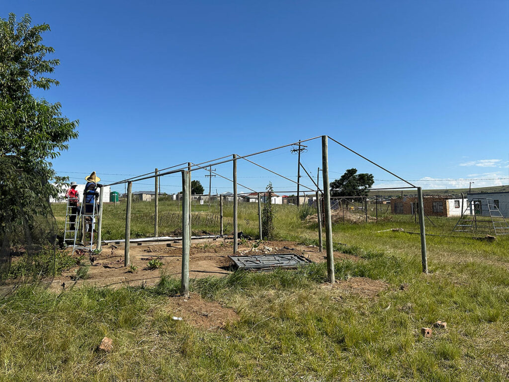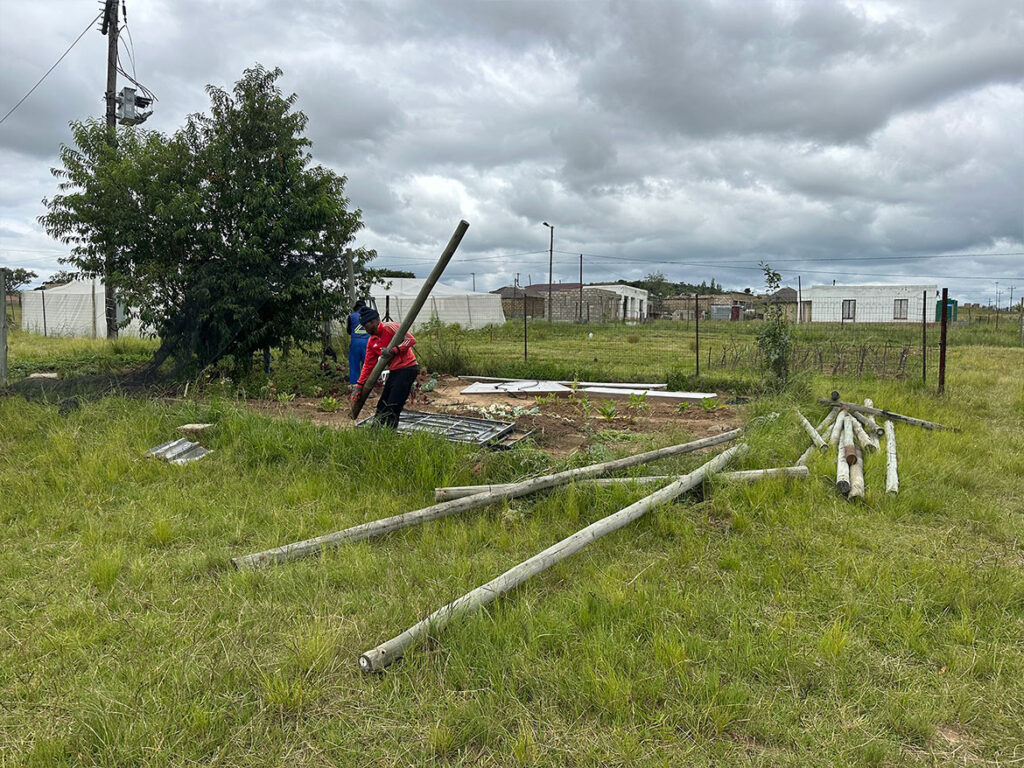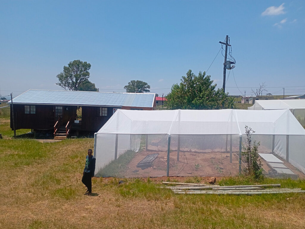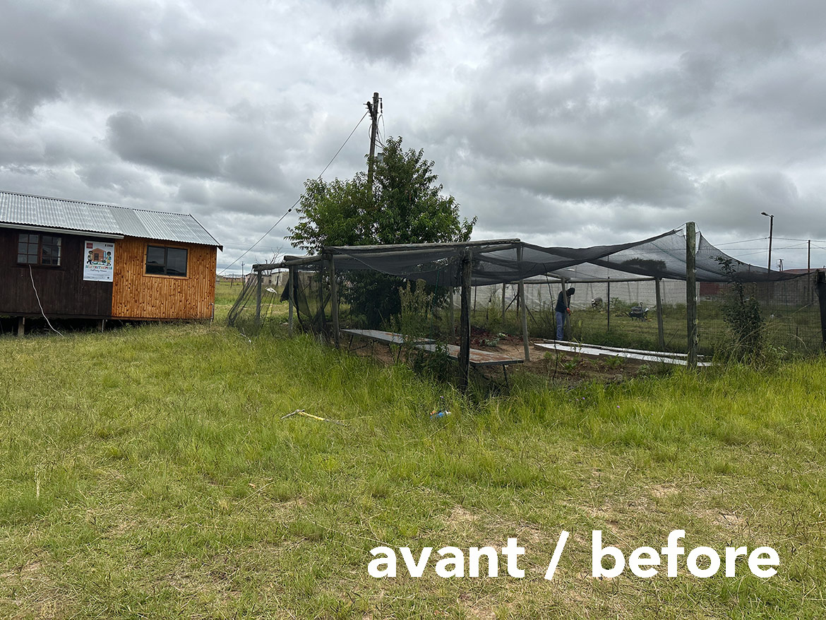 In Roosboom, there was an old greenhouse before the 200 m² greenhouse for market gardening was built. Although very dilapidated, it was still used as a nursery. Taking advantage of the arrival of gardeners from Levi’s Nek farm, the team undertook to rebuild a new one that was more functional and better suited to the climatic conditions.
