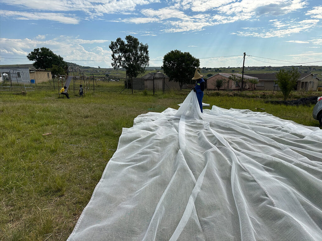 A 40% white shade net was chosen to replace the old black fabric, which attracted excessive heat. This new covering filters the light while maintaining a milder temperature, ideal for germination and the development of young plants.
