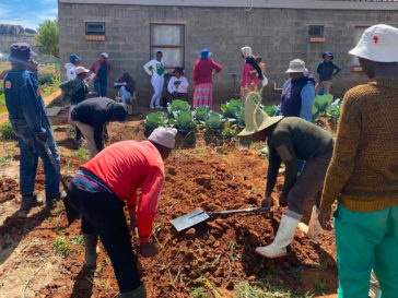 The group of Ladysmith supported by Designing Hope moved to Lesotho for training in raised beds and compost creation techniques.