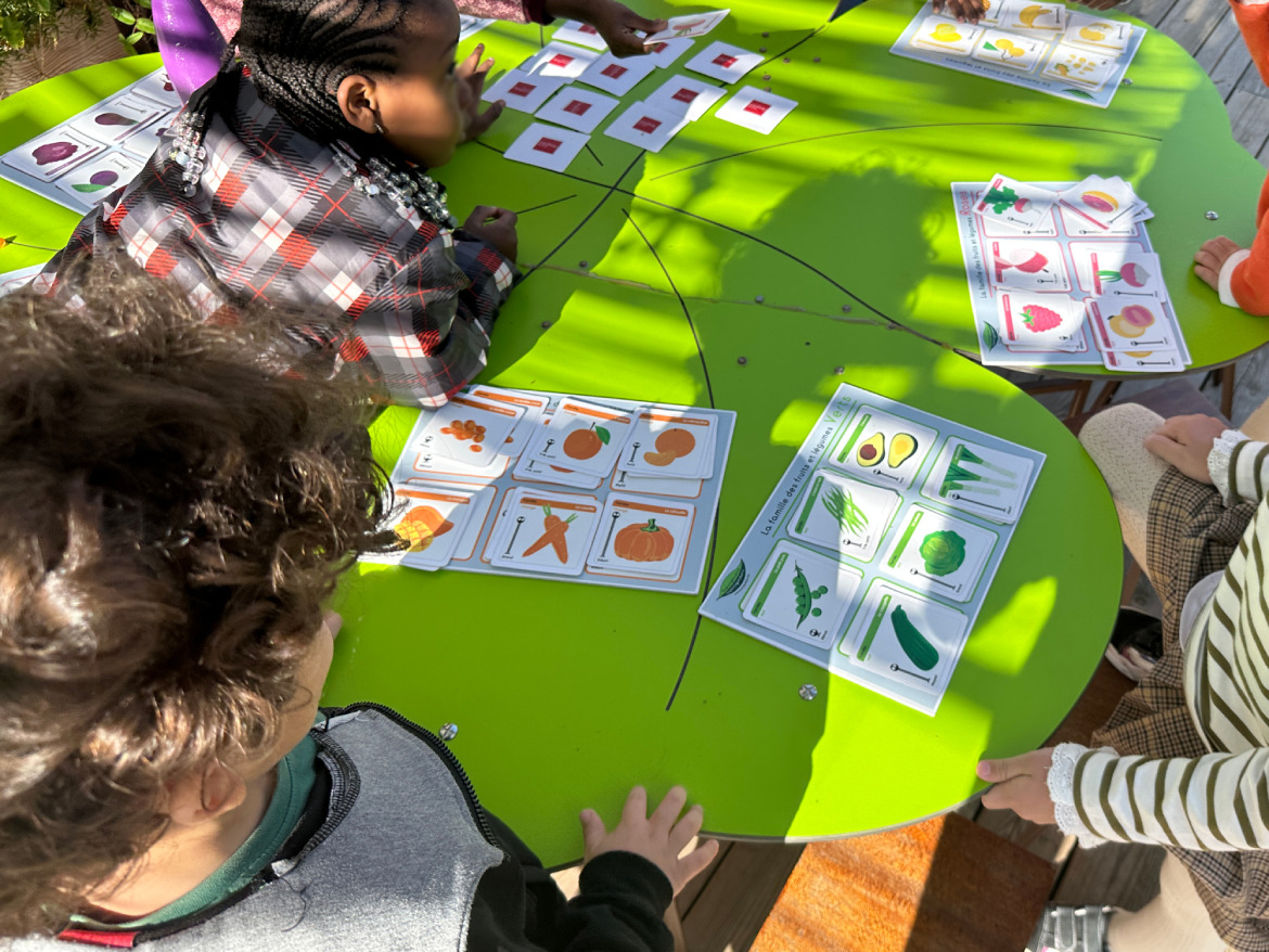 Cette semaine, les enfants de la maternelle de l’école de Bercy ont découvert un nouveau jeu de mémoire et d’observation autour des légumes du potager : le jeu des 7 familles de couleurs de légumes !