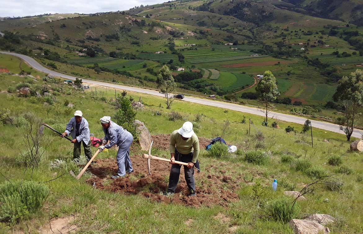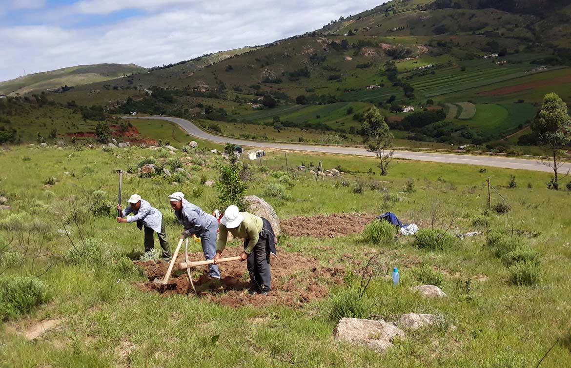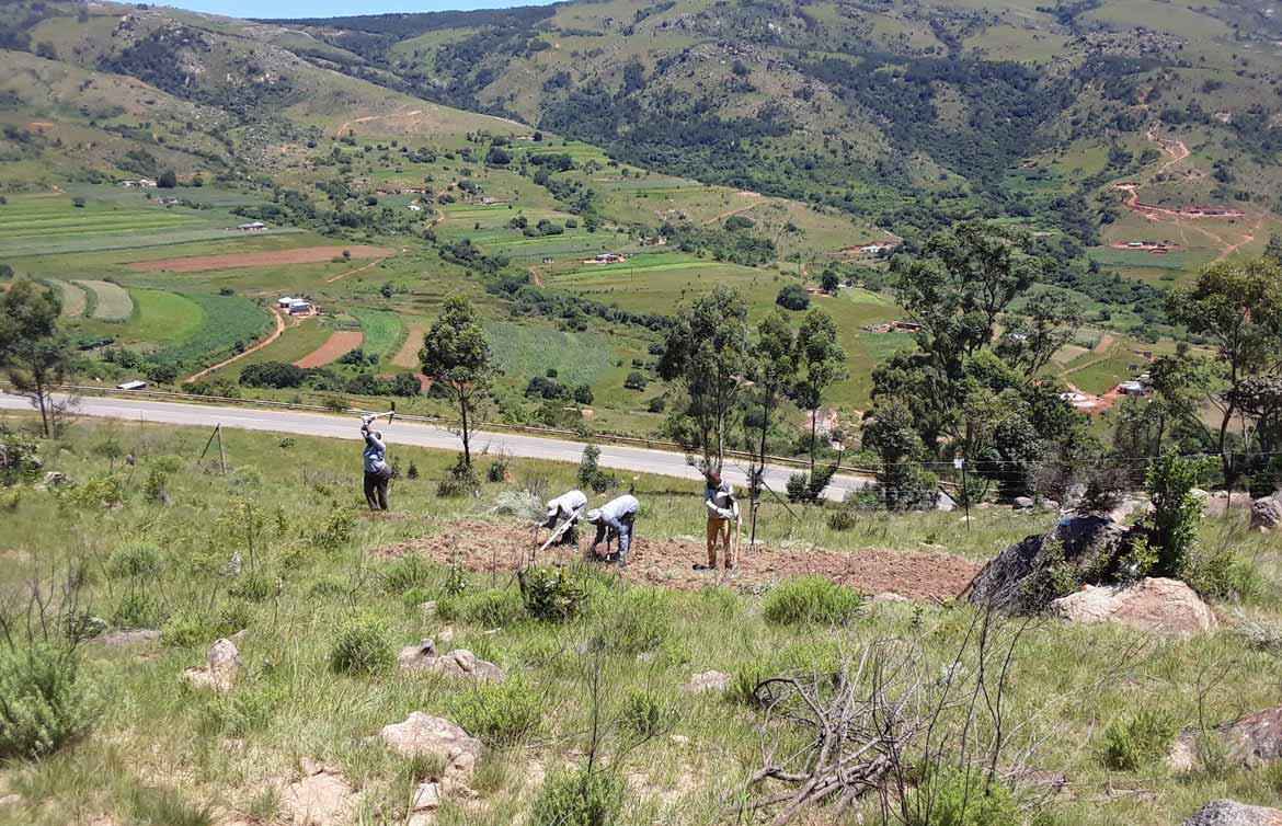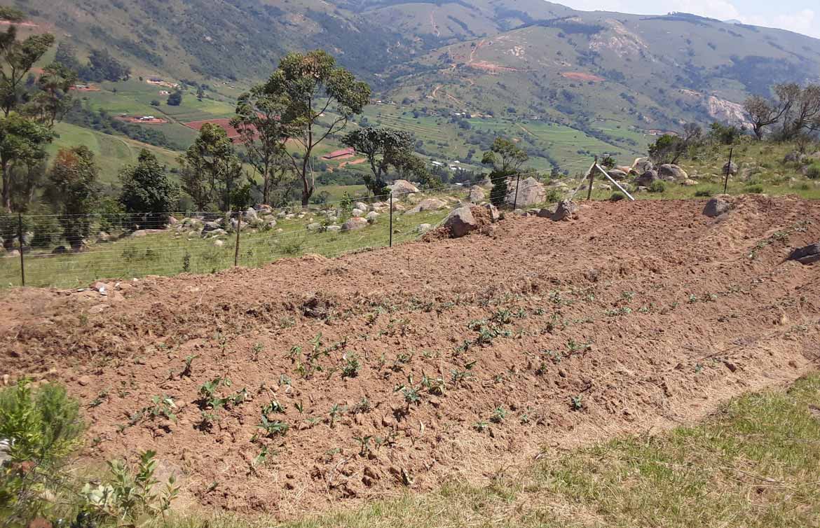 L’aménagement du terrain de Malanti se poursuit et on entame les plantations par les patates douces ! En effet, cette espèce est particulièrement adaptée au paysage de petites montagnes et collines où se trouvent des roches ainsi qu’au climat tropical en Eswatini. Le sol en pente a été travaillé afin de créer une parcelle en buttes où ont été plantées les patates douces.