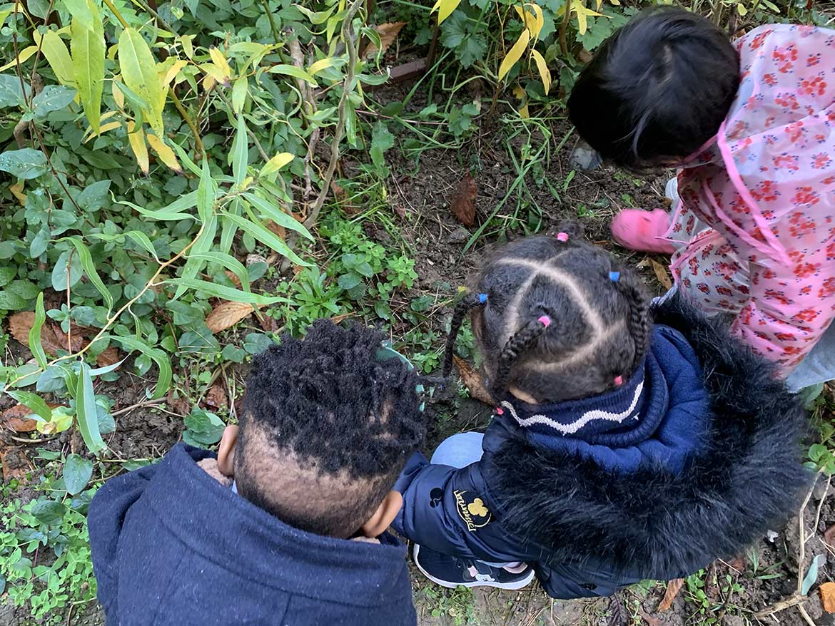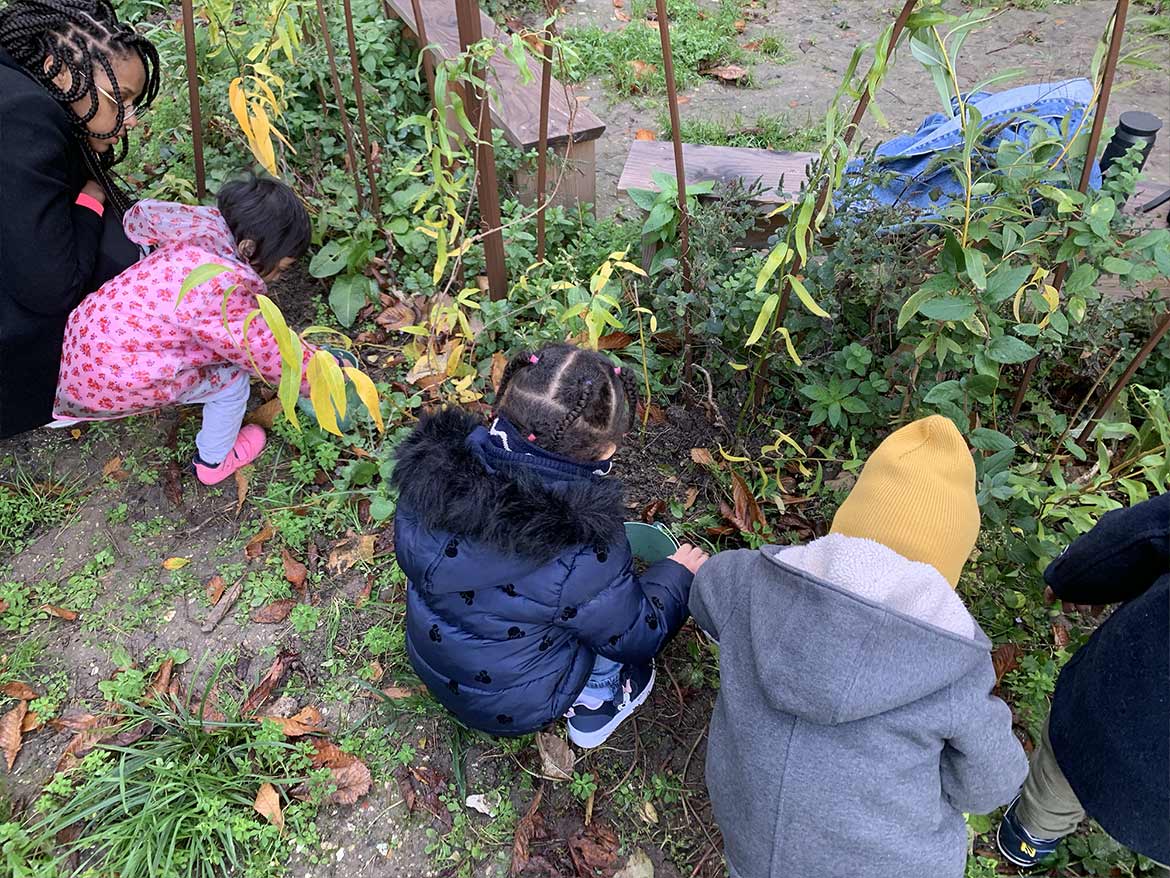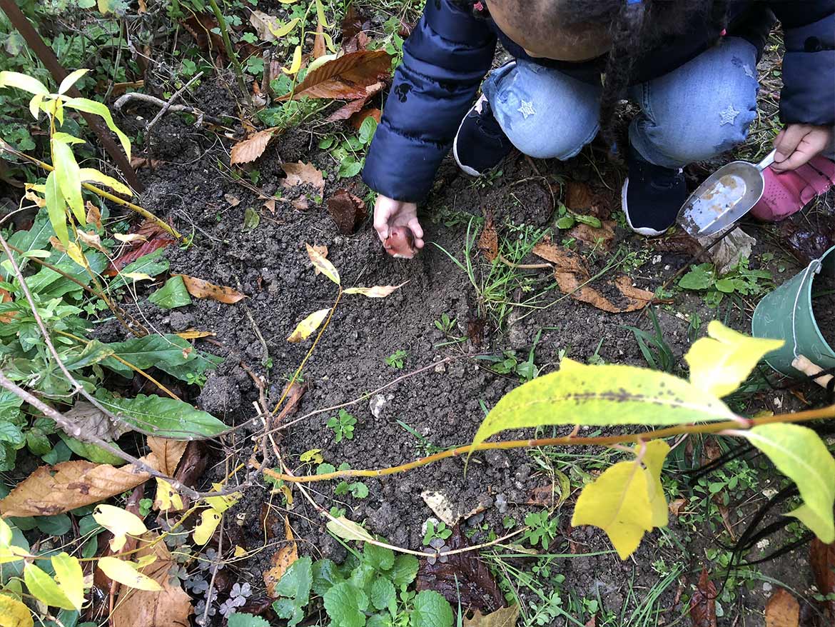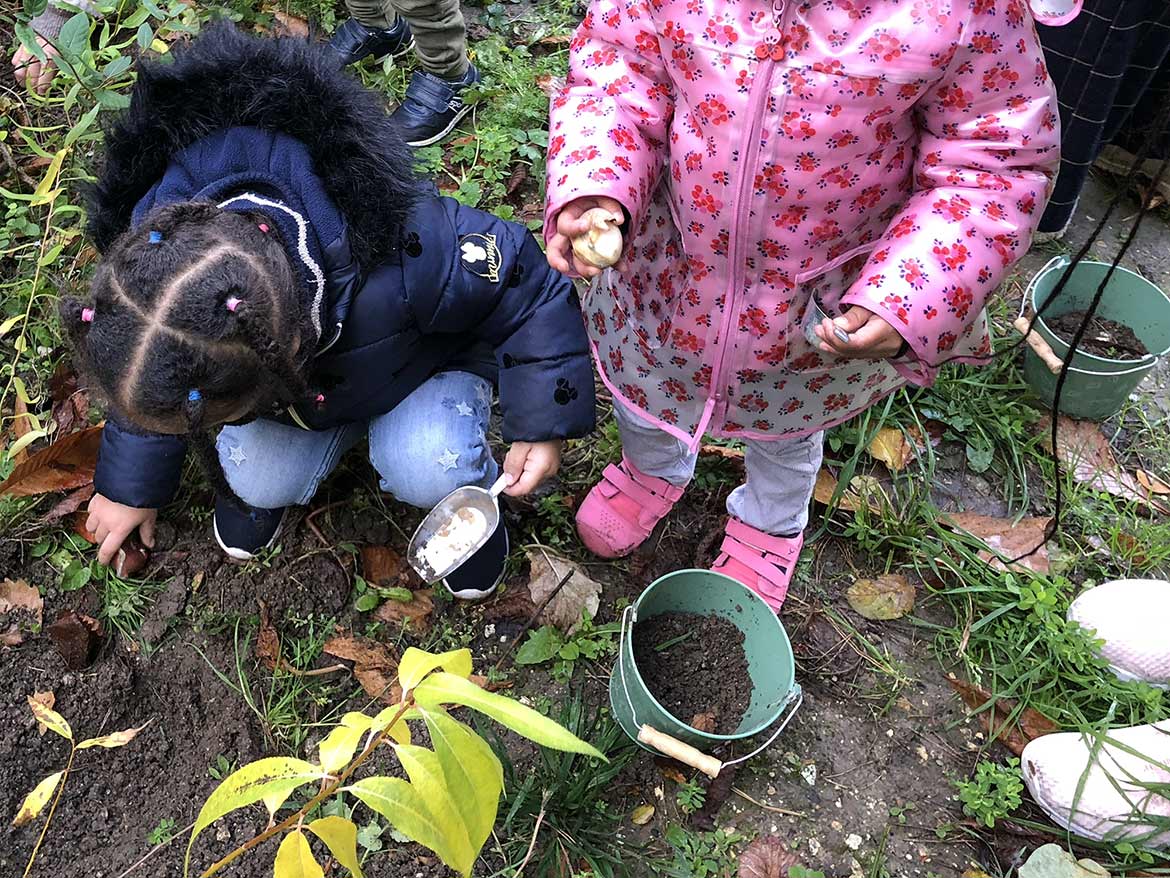 Avec les enfants de la crèche de Villiot, nous avons planté des bulbes de tulipe tout autour du kiosque du jardin de la Traversine Villiot.