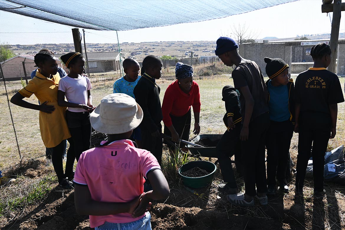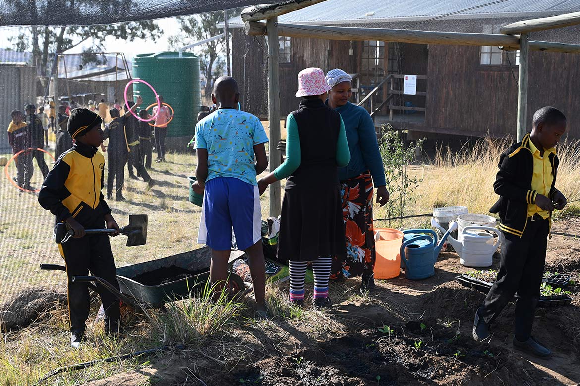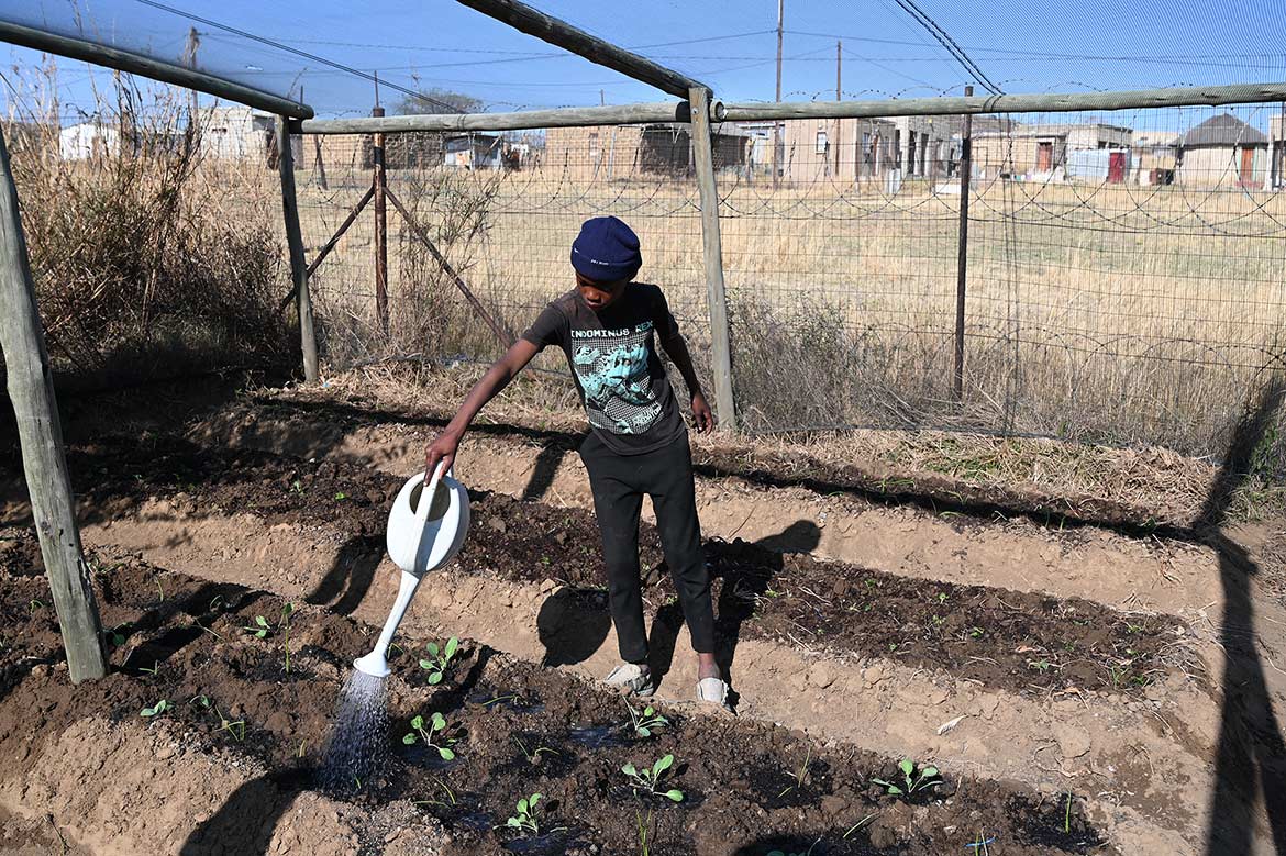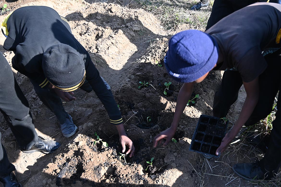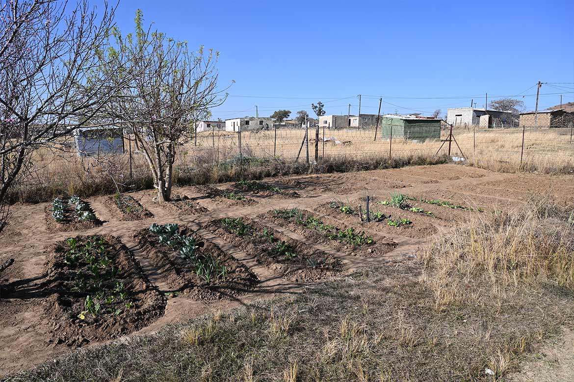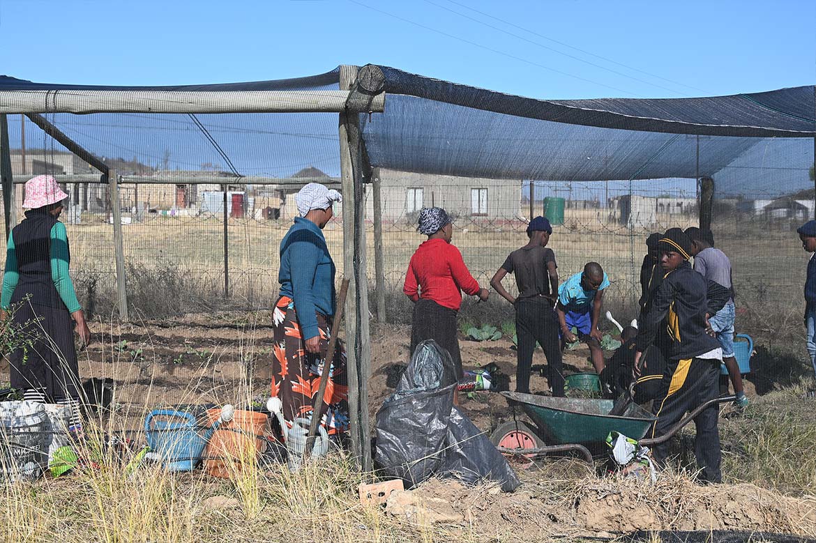 La serre de la Half Way House de Roosboom, agrandie avec l’aide des jeunes de la ferme de Ste Monica au Lesotho, peut désormais accueillir plus de plants, protégés des rayons du soleil et des oiseaux et sauterelles, qui raffolent des jeunes pousses, surtout pendant la saison sèche hivernale.