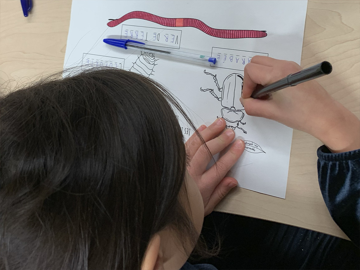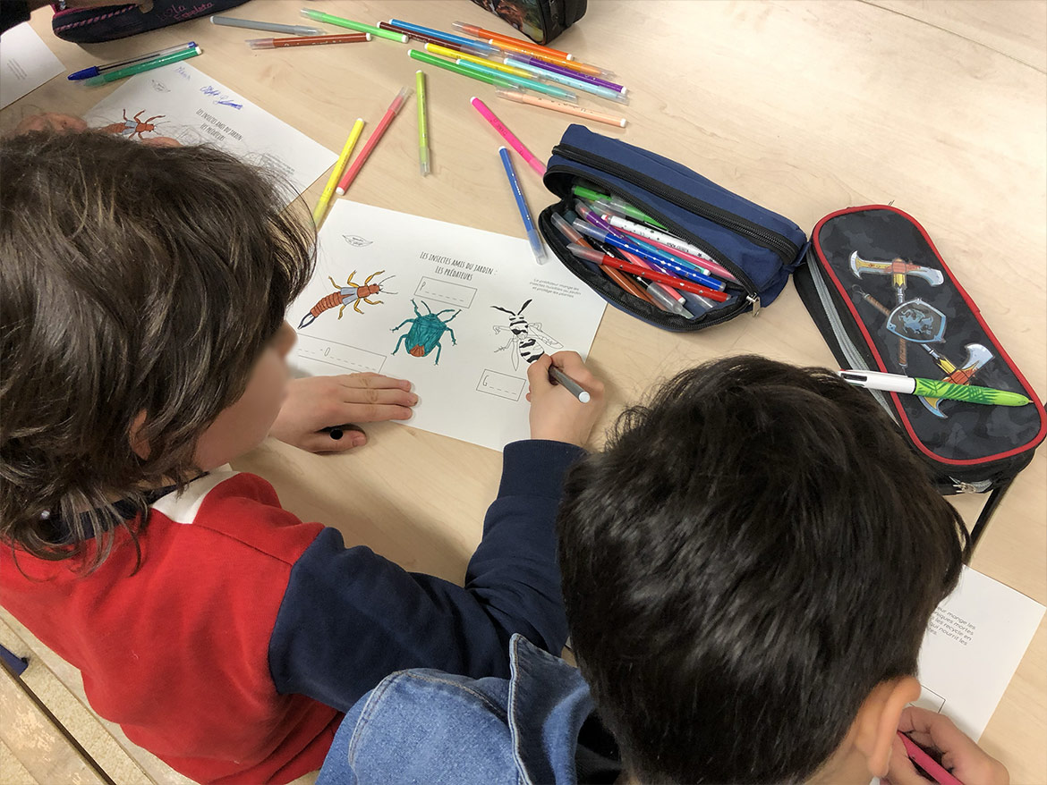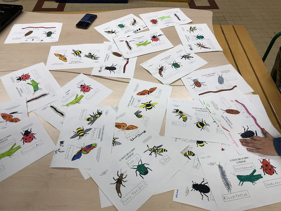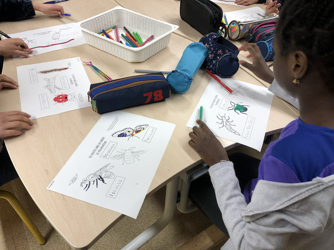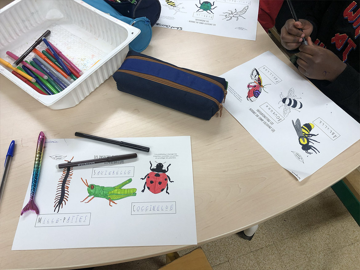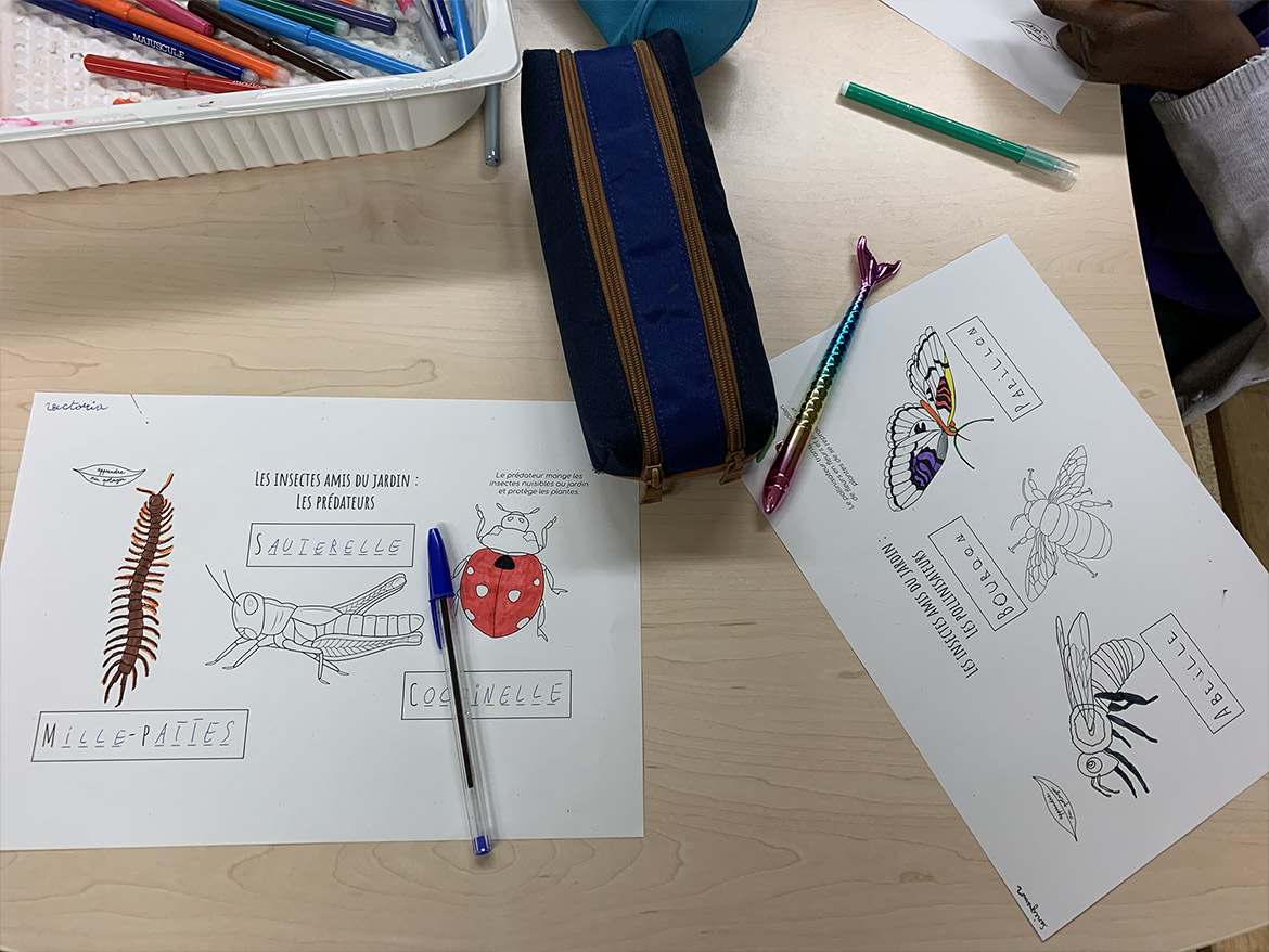 The children of the elementary school of Bercy in Paris were able to discover the various insects in the garden through colouring boards realised by the association.