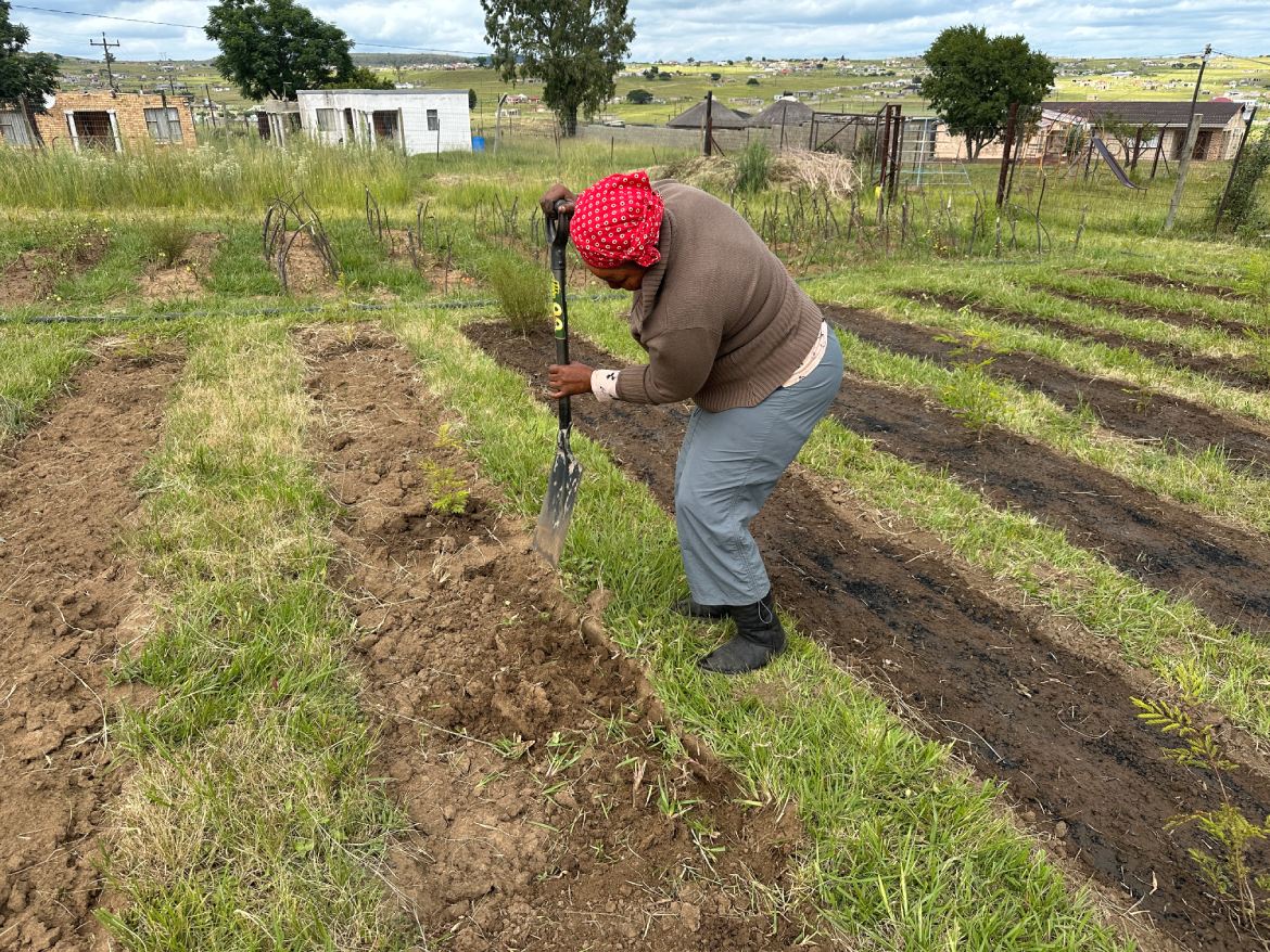 À Roosboom, l’équipe du potager — désormais composée de quatre femmes et deux hommes du township — intervient plusieurs matinées par semaine aux côtés de Fisani, en charge du projet. Après les récoltes, une nouvelle étape essentielle commence : la préparation des planches de culture pour la saison à venir.