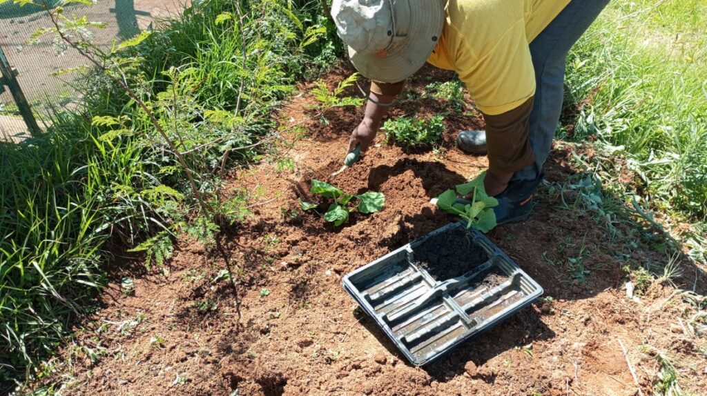 Repiquage des plants produits dans la pépinière du Jardin des Savoir-Faire, Eswatini