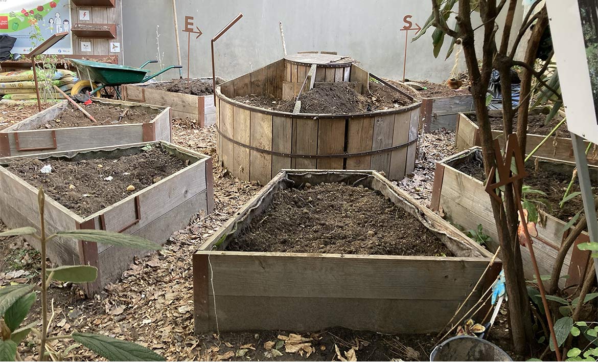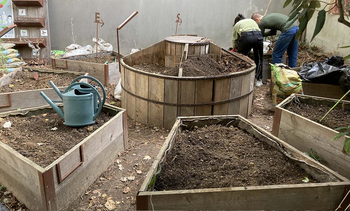 C’est l’automne, il est temps d’enrichir et de regarnir les bacs du mandala et du Keyhole du jardin de la Traversine Bercy afin de préparer les bacs pour accueillir des nouvelles cultures.