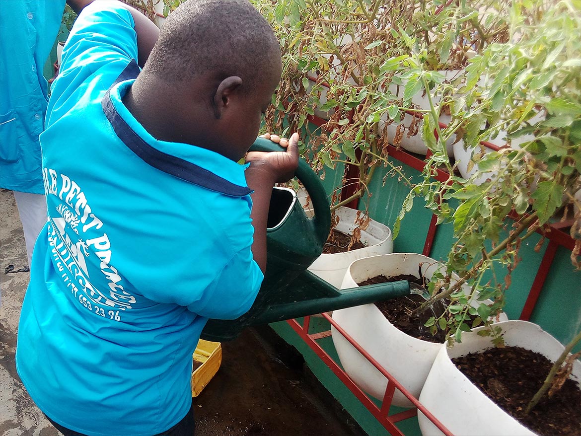 Watering the garden at the school of Petits Princes in Rufisque